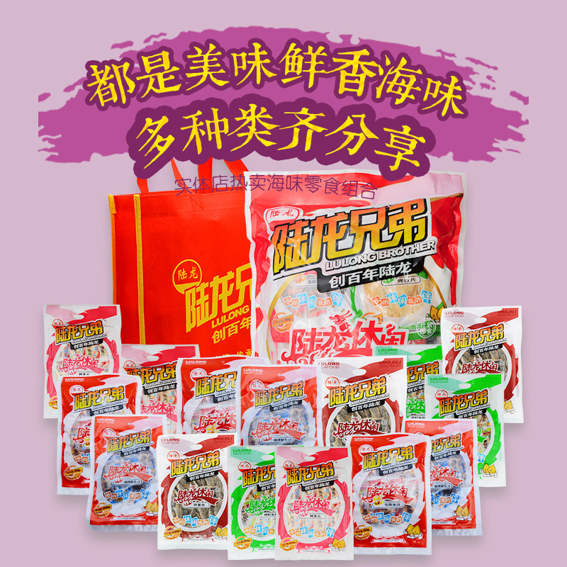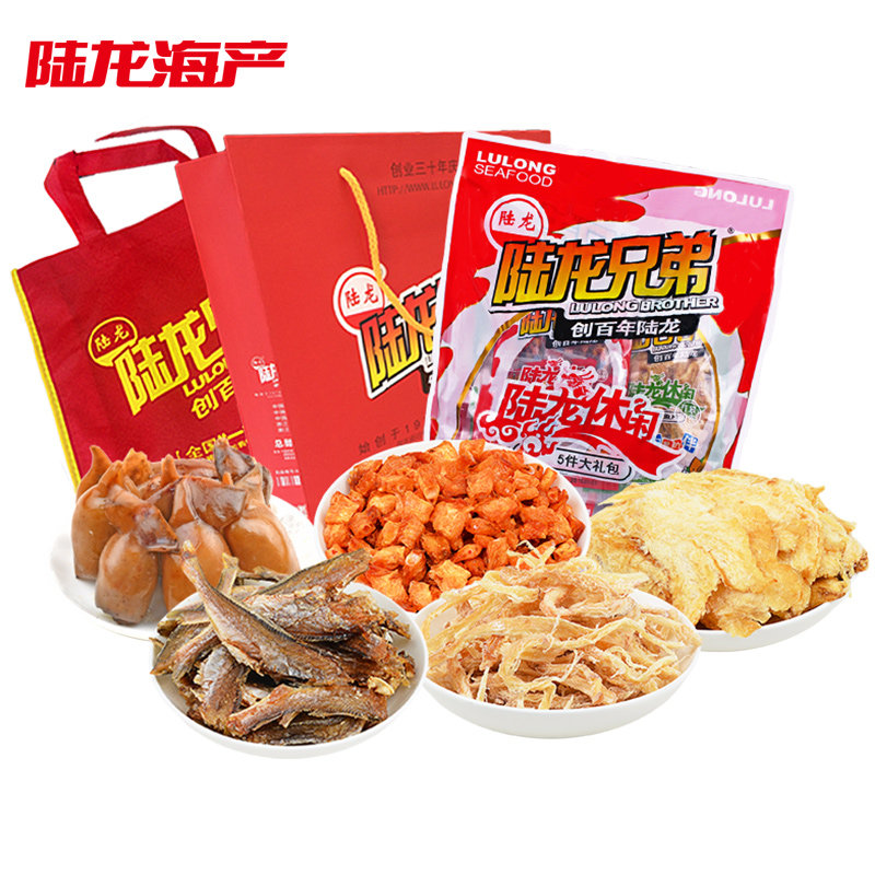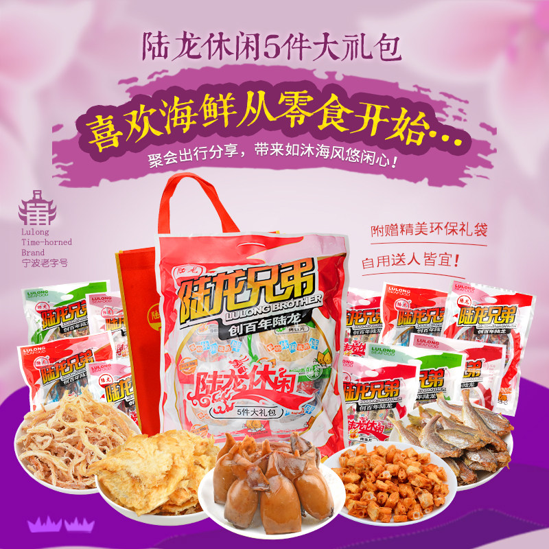 节日礼品装 大份量 高品质零食共15袋960g 陆龙兄弟休闲5件大礼包
