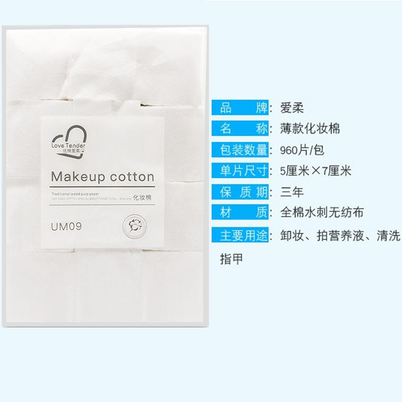 爱柔纯棉无纺布化妆棉 1000片 洗脸卸妆棉洗甲棉美容棉美甲棉薄款