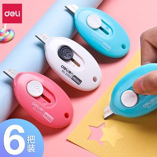 6把得力迷你美工刀小号开箱器裁纸刀拆信刀拆快递便携小刀削笔刀