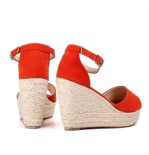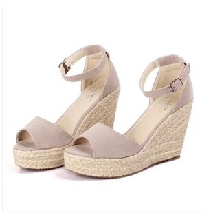 厚底松糕防水台一字扣高跟女鞋 草编坡跟鱼嘴凉鞋 2025春夏季 女凉鞋