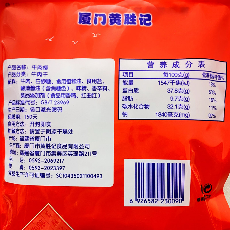 可与其它袋装 包邮 产品混搭 参与6袋 官网黄胜记牛肉柳48g