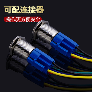 金属按钮开关防水自锁16 小型带灯复位电源启动 22mm汽车按键改装