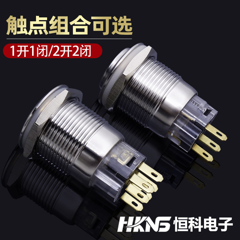 19mm 金属按钮开关自复位自锁带灯防水汽车改装 圆形小型开关12