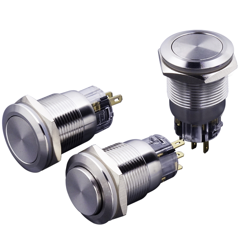 22mm金属按钮开关自复位自锁防水电源启动小圆形按键螺丝脚