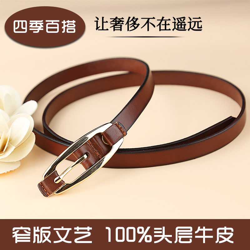 皮带女真皮头层纯牛皮腰带细时尚 带韩国复古配裙子 休闲简约百搭裤