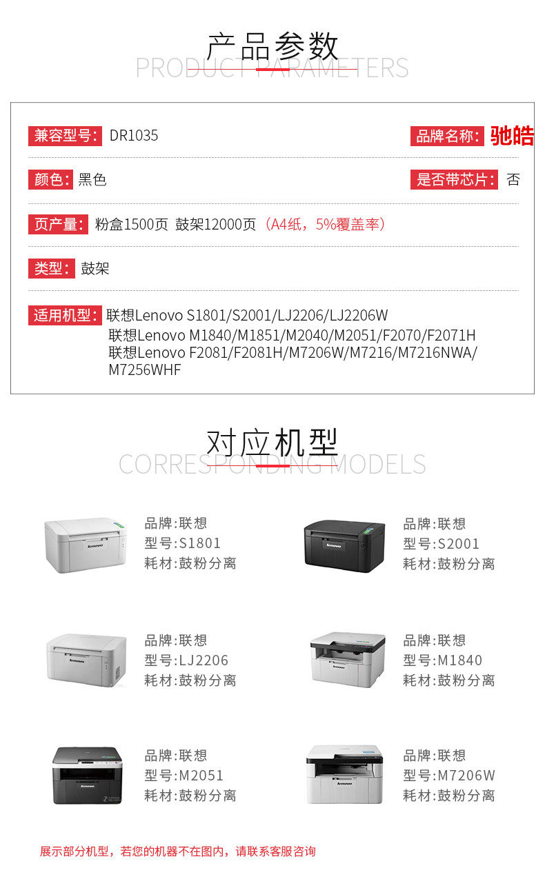 F2070 1851 2071 1840 2001墨粉盒 M2040 适用联想S1801硒鼓DR201