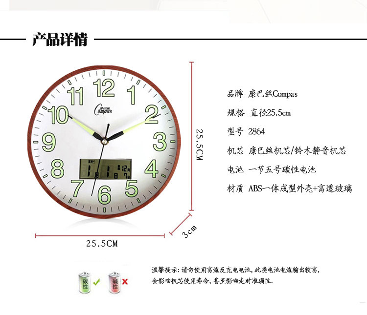 康巴丝静音客厅挂钟万年历创意时尚 简约家用卧室现代电子日历钟表