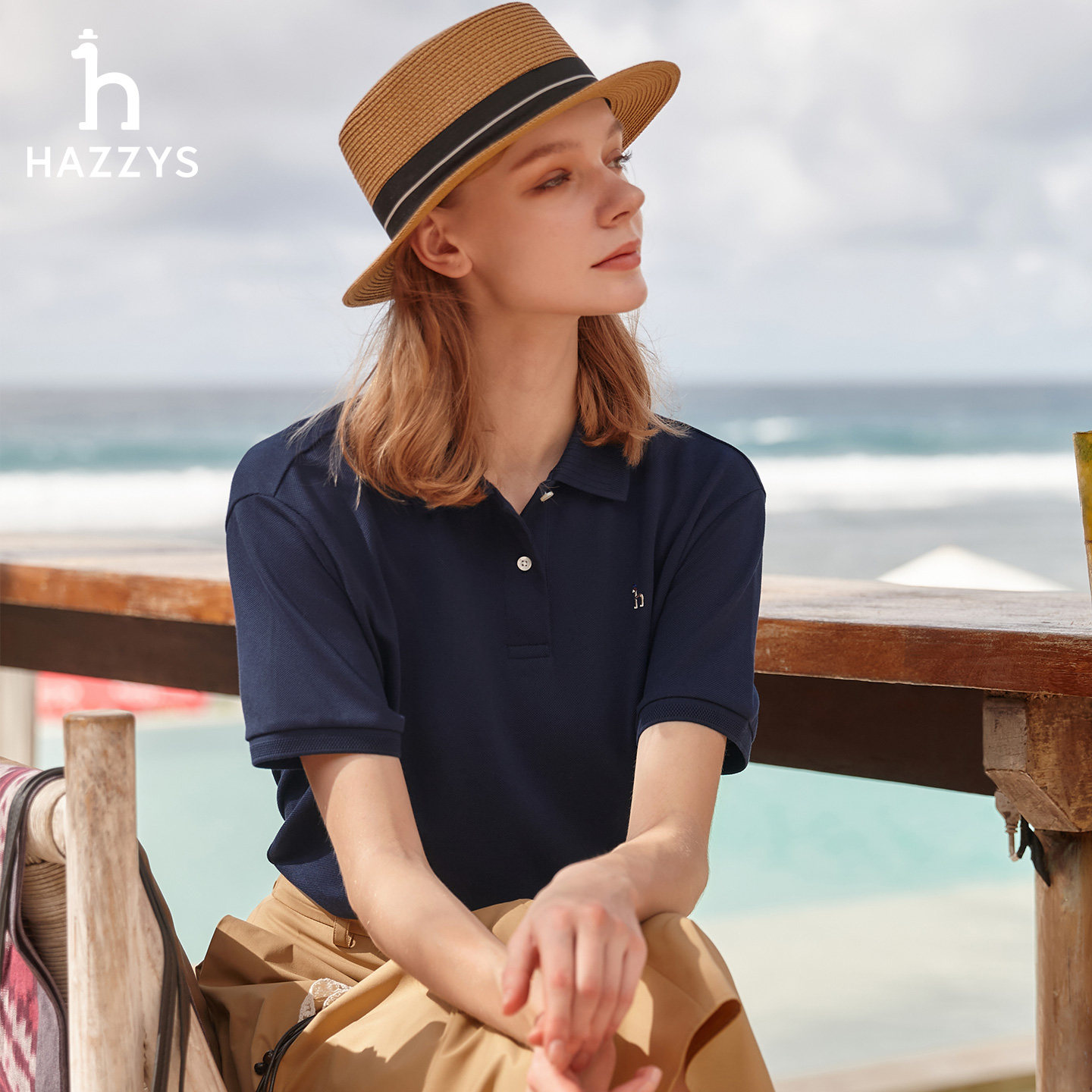 休闲短袖 女士时尚 Hazzys哈吉斯polo衫 T恤宽松上衣潮 春夏甄选