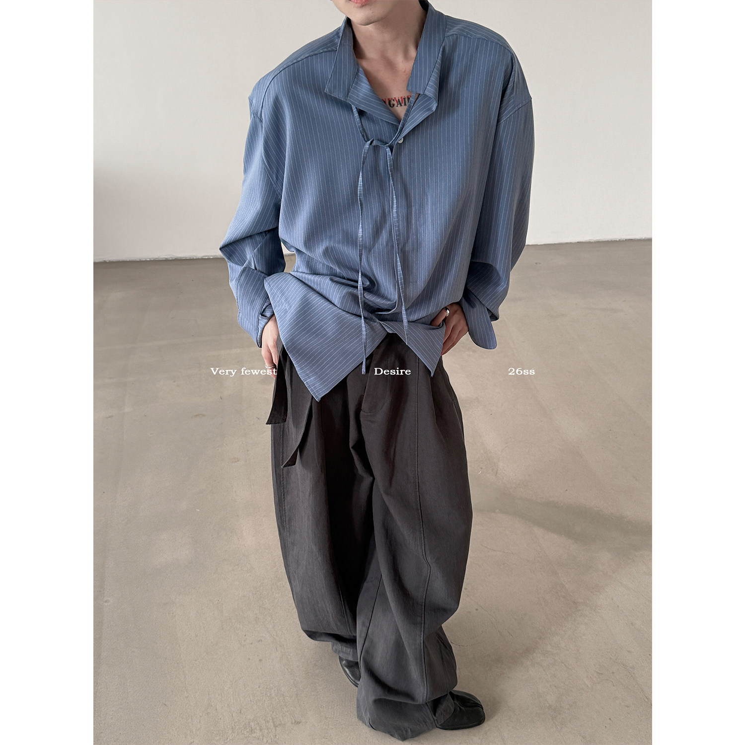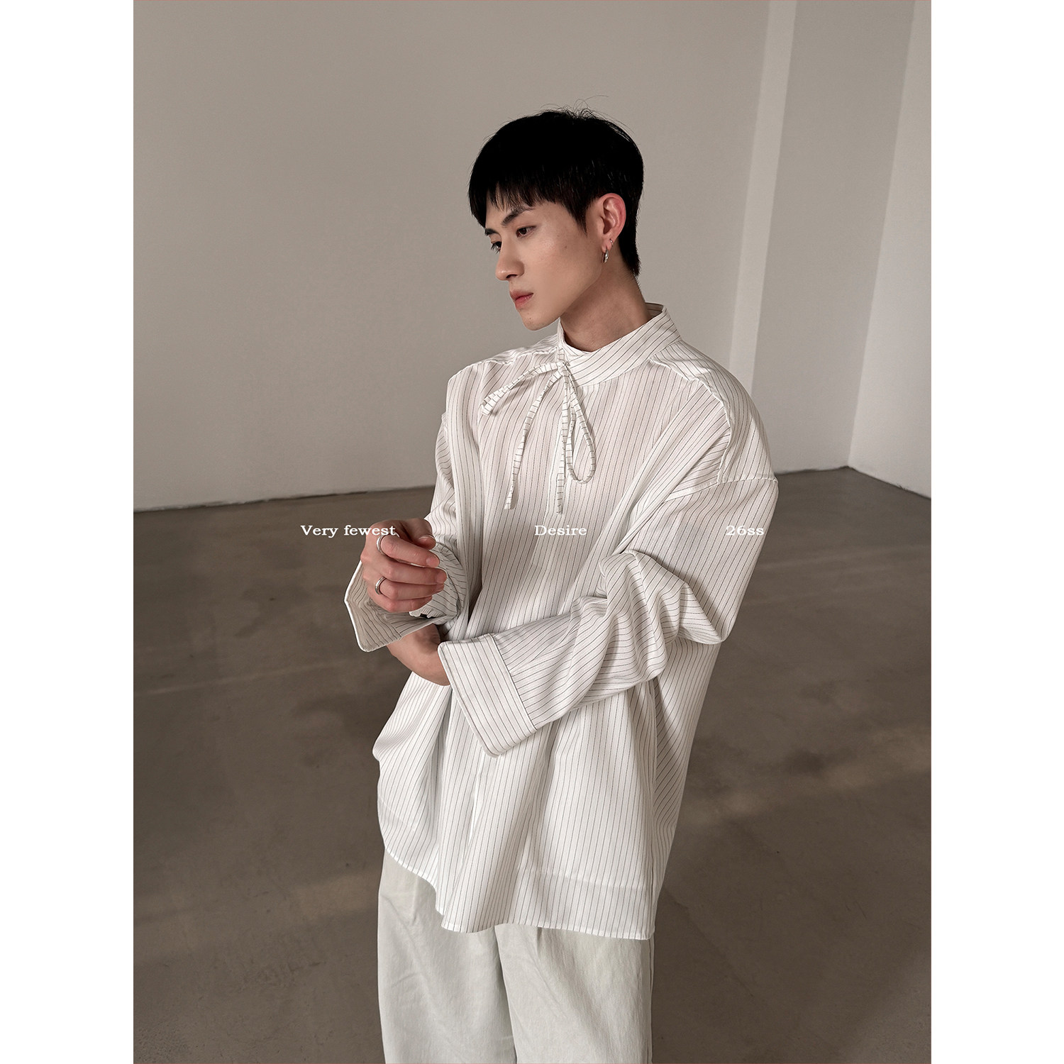 衬衣男女款 VERY 春夏松弛感系带长袖 简约廓形立领条纹衬衫 FEWEST