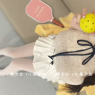 显瘦减龄上衣 纯欲风甜美爱心镂空翻领针织马甲修身 TiTi美少女