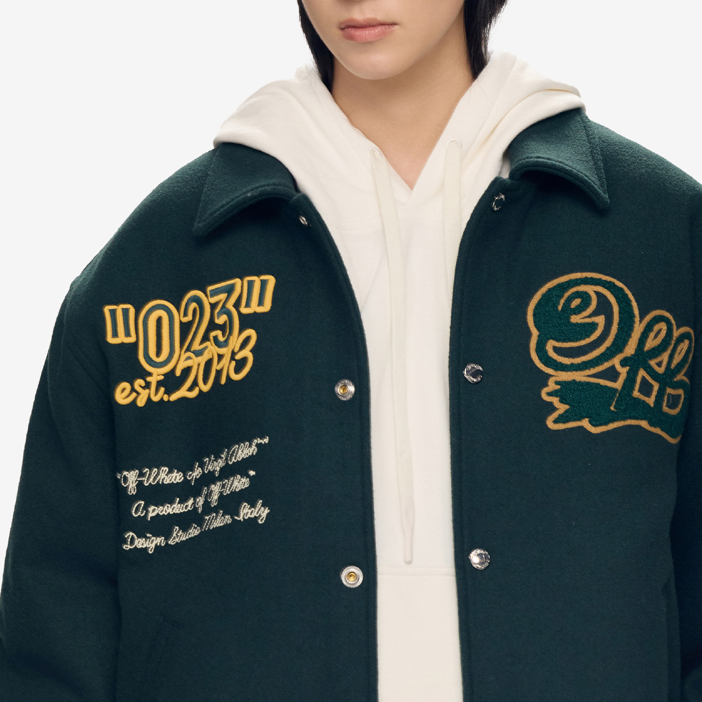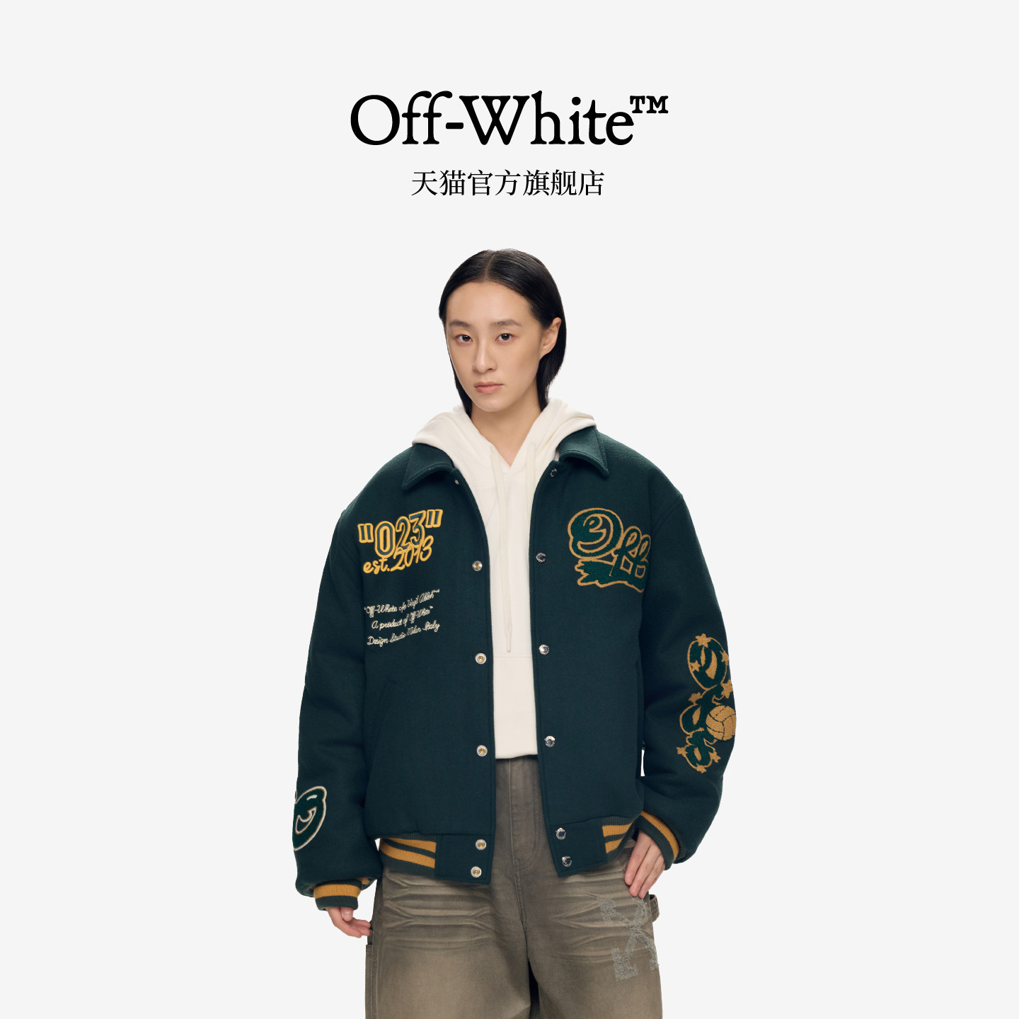 周柏豪同款 新款 OFF 情侣装 翻领毛呢棒球服呢外套 WHITE™