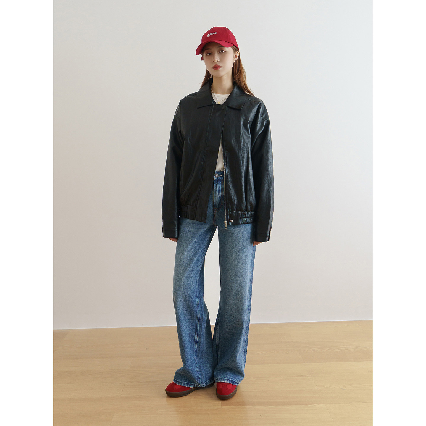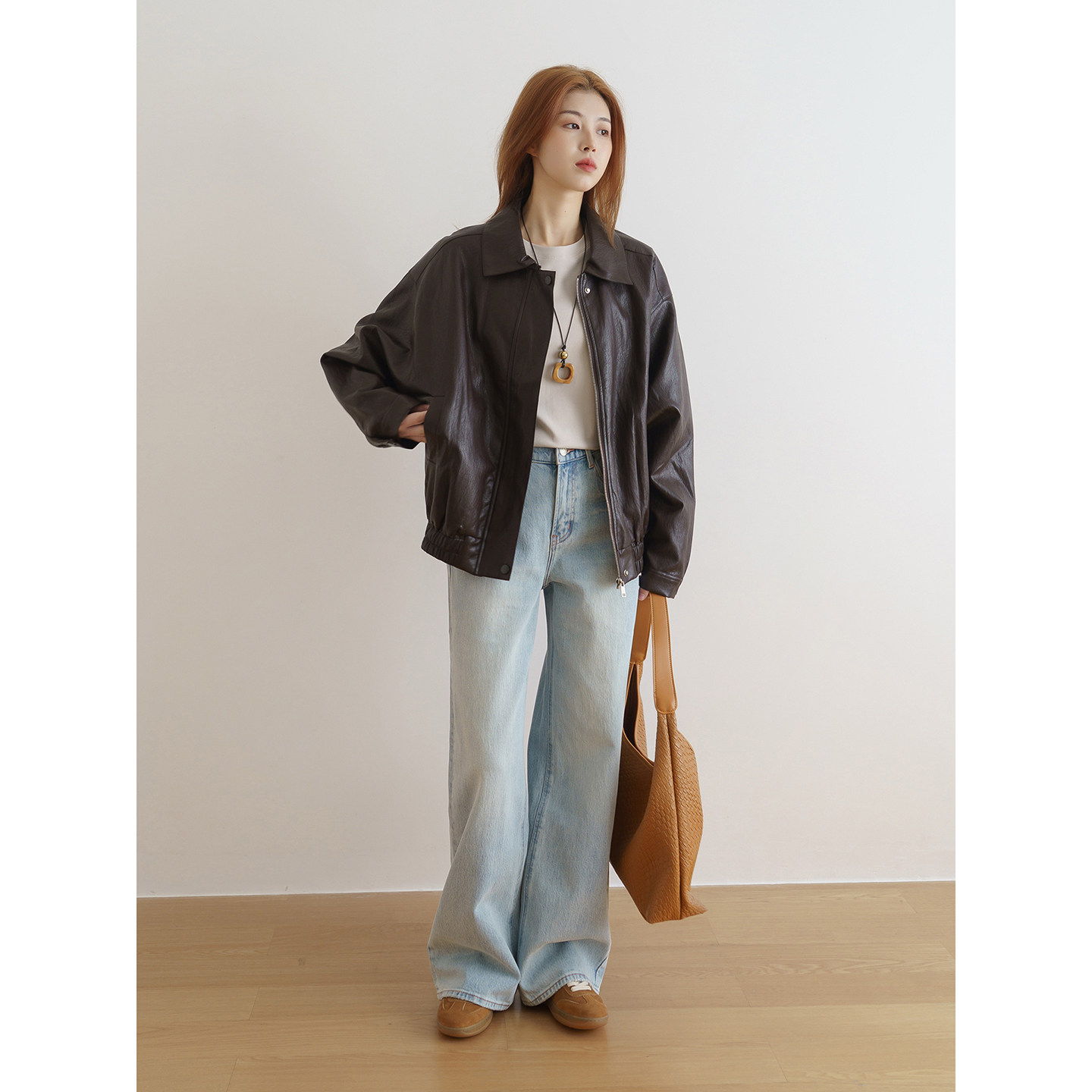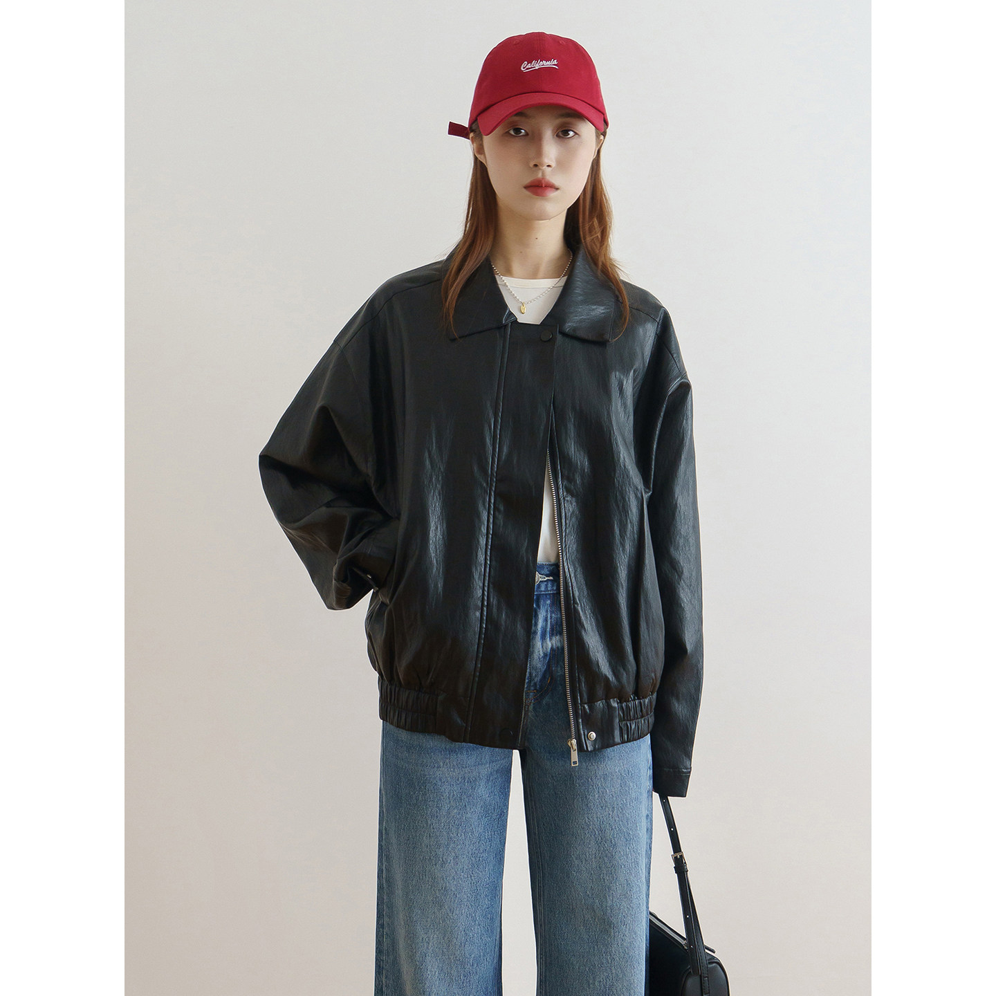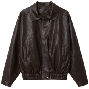 floradance美式 高级感PU机车服夹克外套 复古宽松皮衣女2026春新款