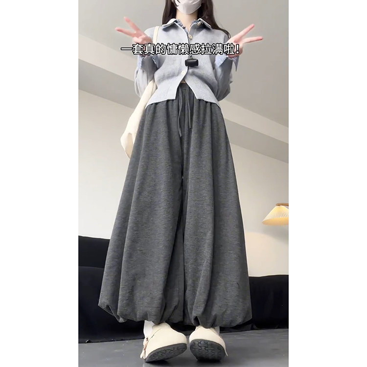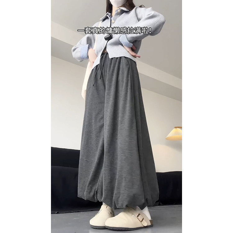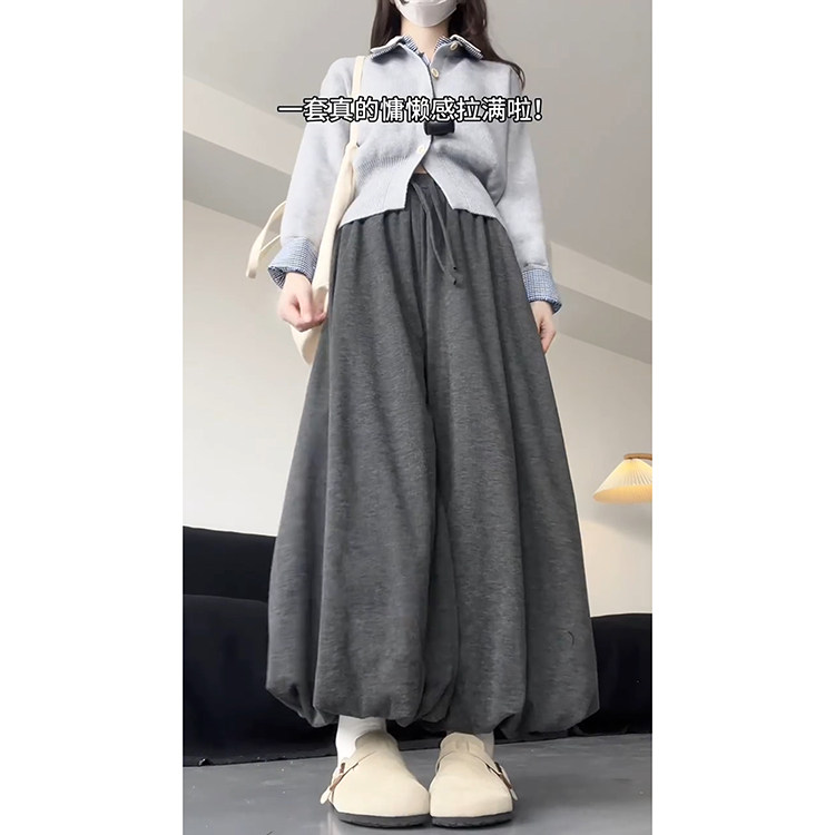 显瘦遮肉加厚宽松阔腿裤 韩系慵懒加绒高腰花苞裙裤 女秋冬2026新款