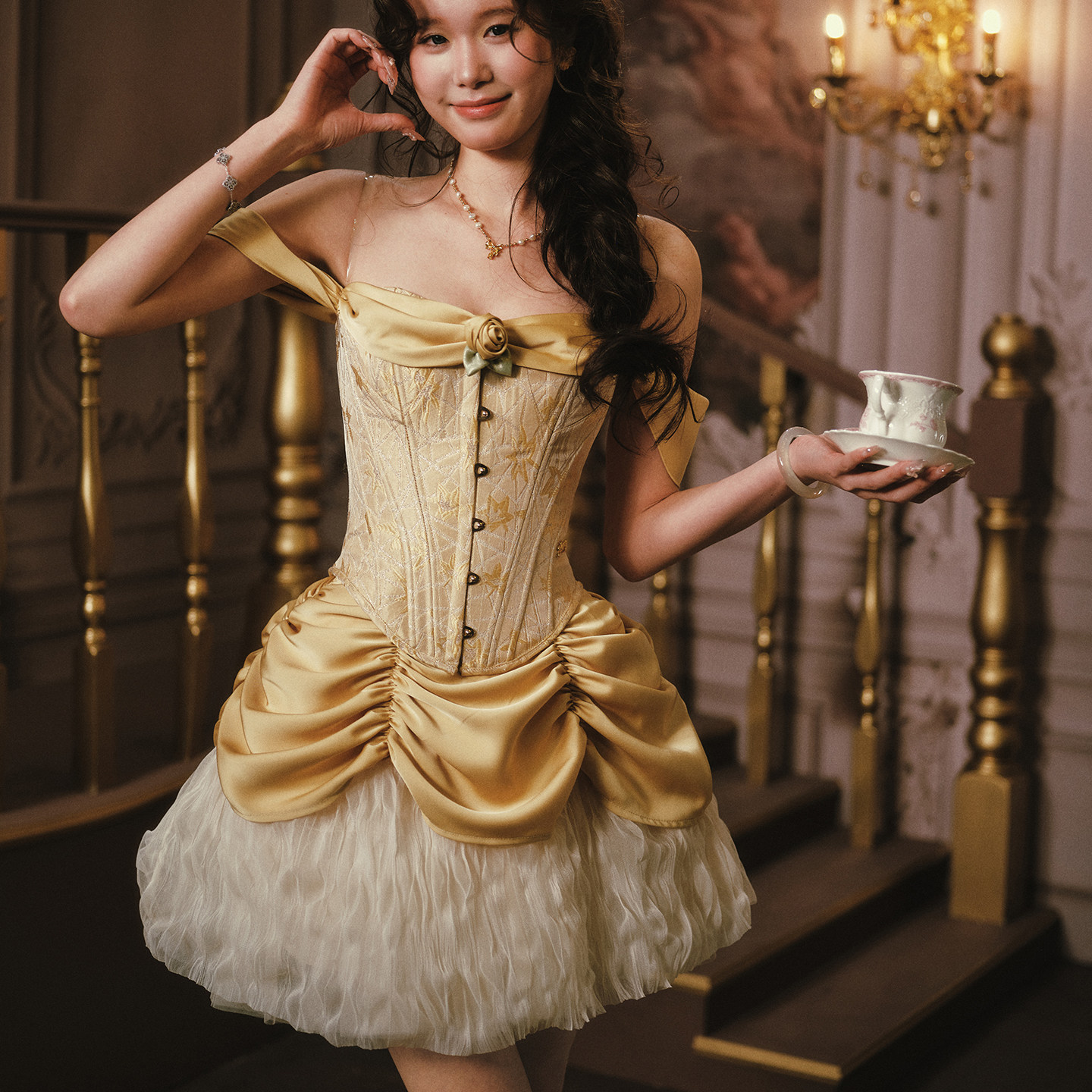 公主系列重工设计感鱼骨胸衣上衣半裙套装 法式 秋香公主 LaceMade