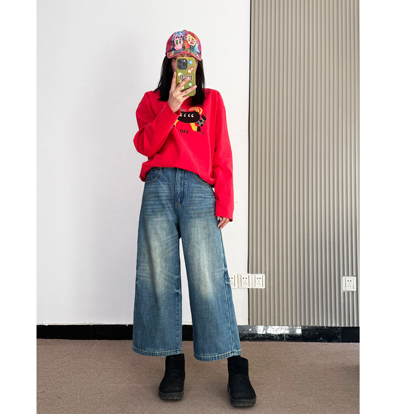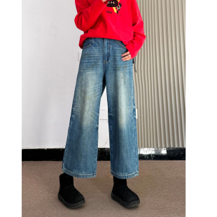 加绒加厚阔腿牛仔八分裤 脏脏裤 女高腰冬保暖 很柔软 此时@炽火
