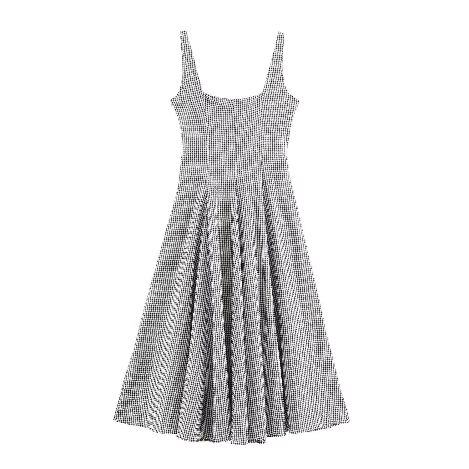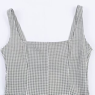 302 方领格纹优雅迷笛吊带连衣裙女3152 WMXZ春季 3152302新款