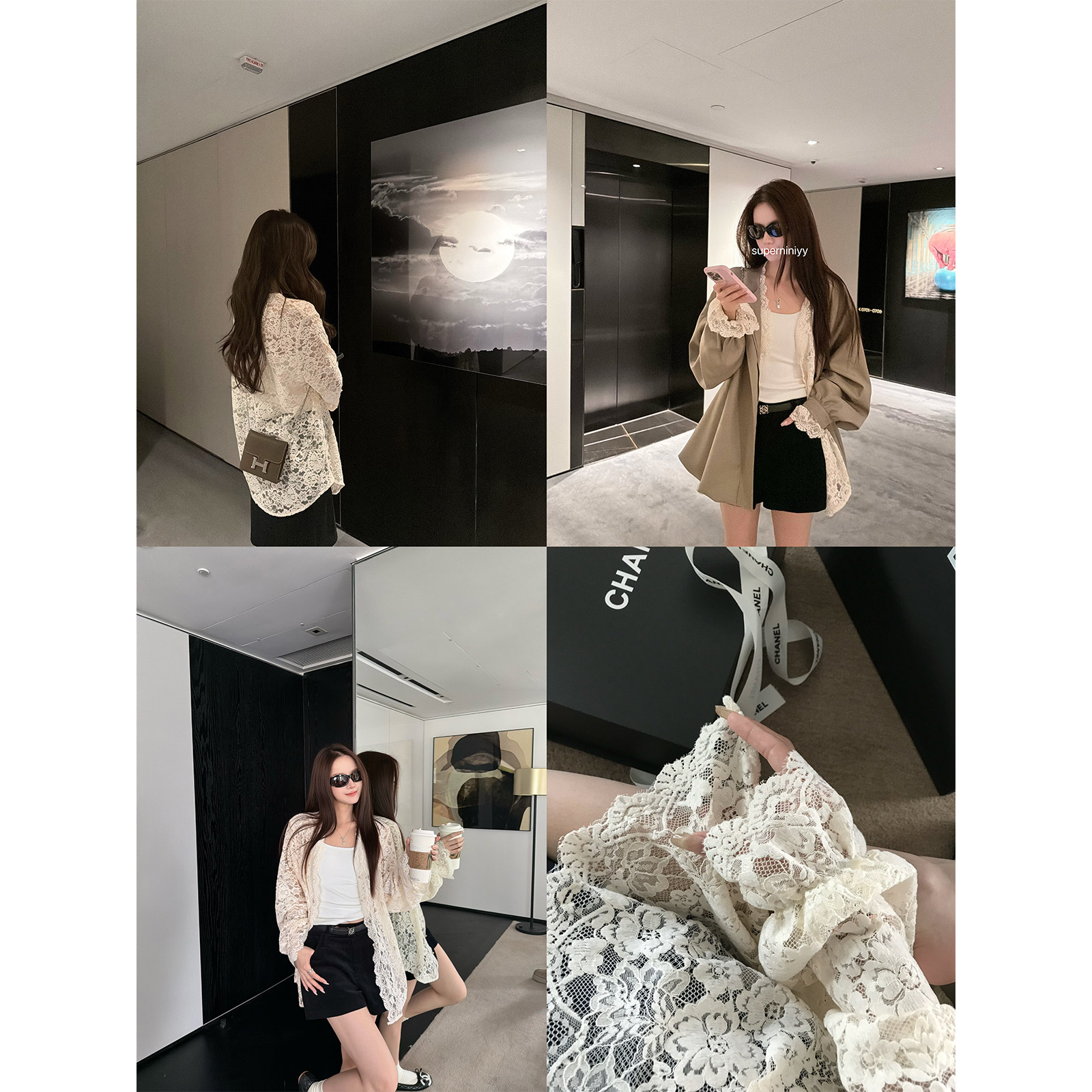 外套开衫 宽松松弛款 春 淡白巧&温柔女主花朵蕾丝开衫 superniniyy