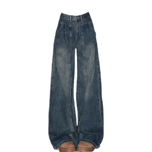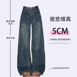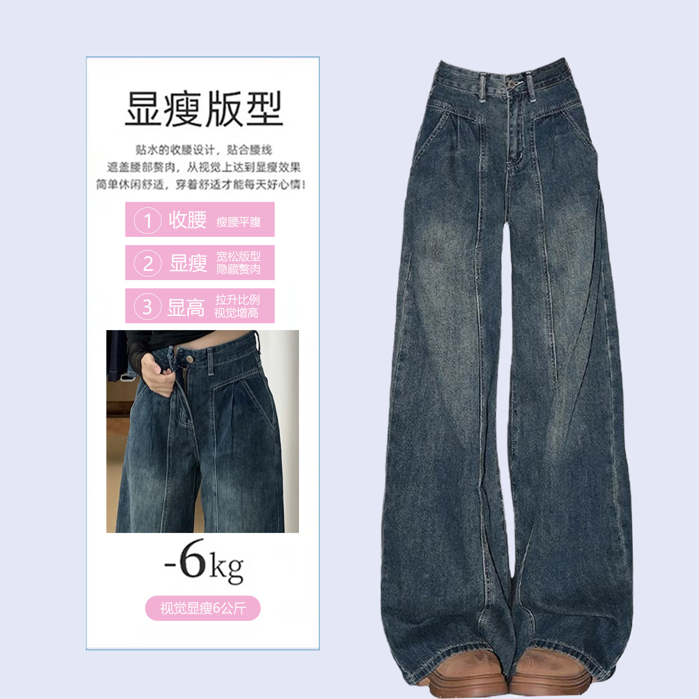 高腰垂感弯刀阔腿裤 300斤特大码 新款 女冬季 子 胖mm复古百搭牛仔裤