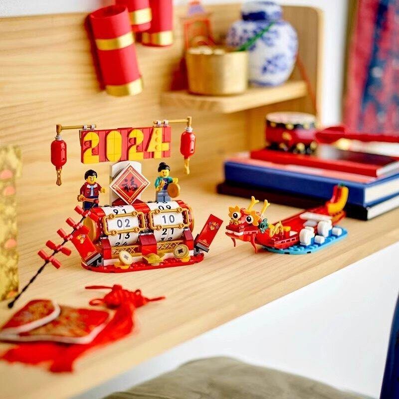 中国积木新春系列新年日历40678节庆台历儿童拼装 玩具春节礼物