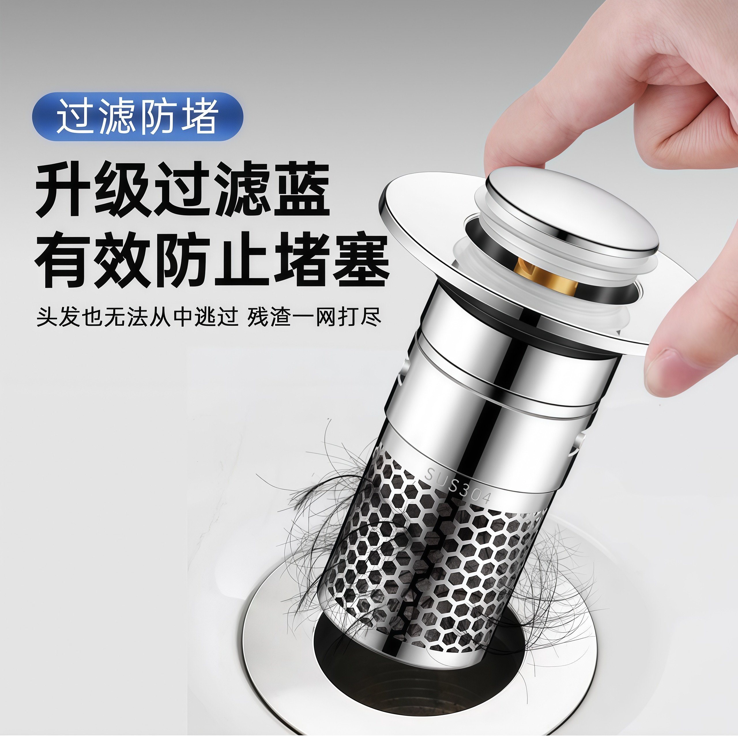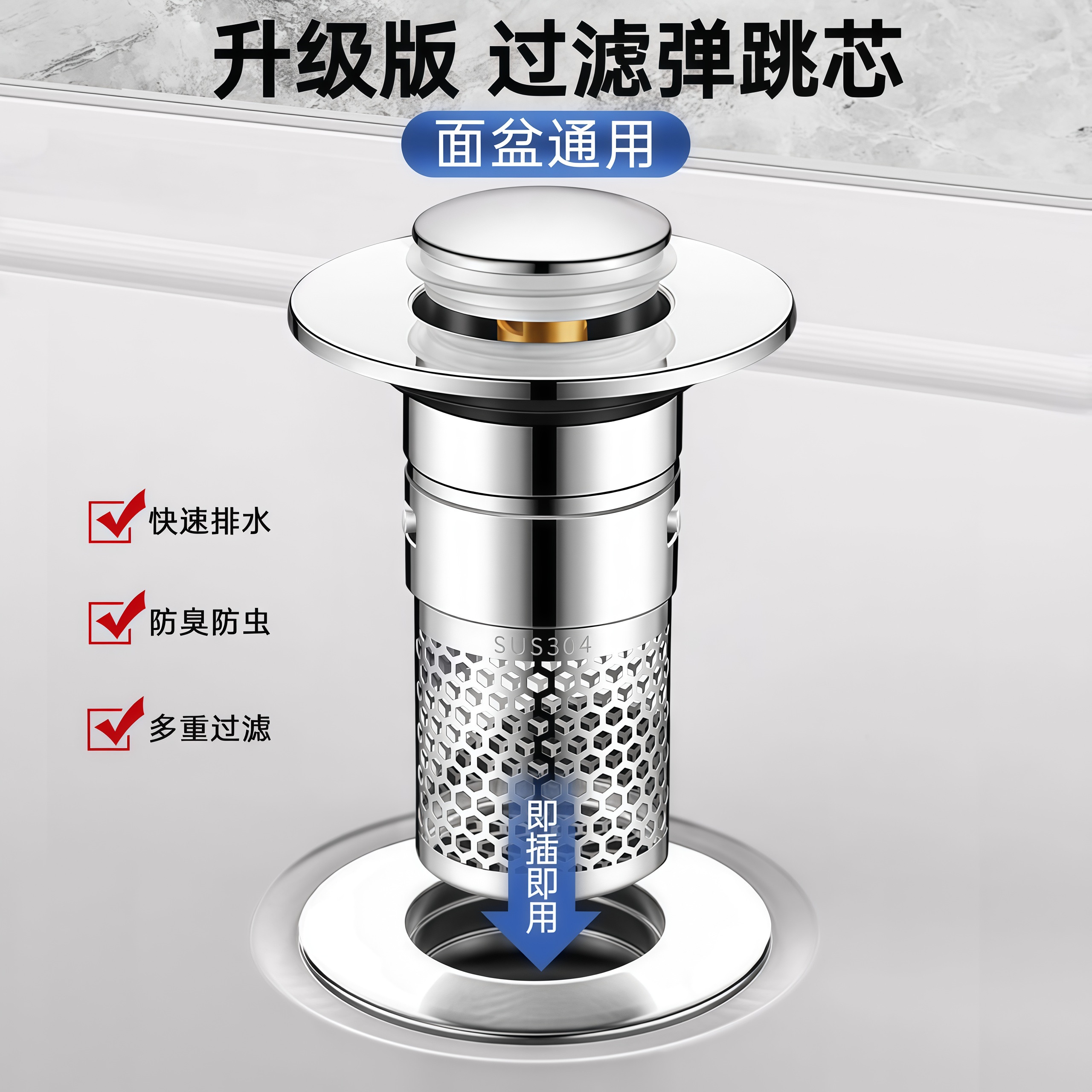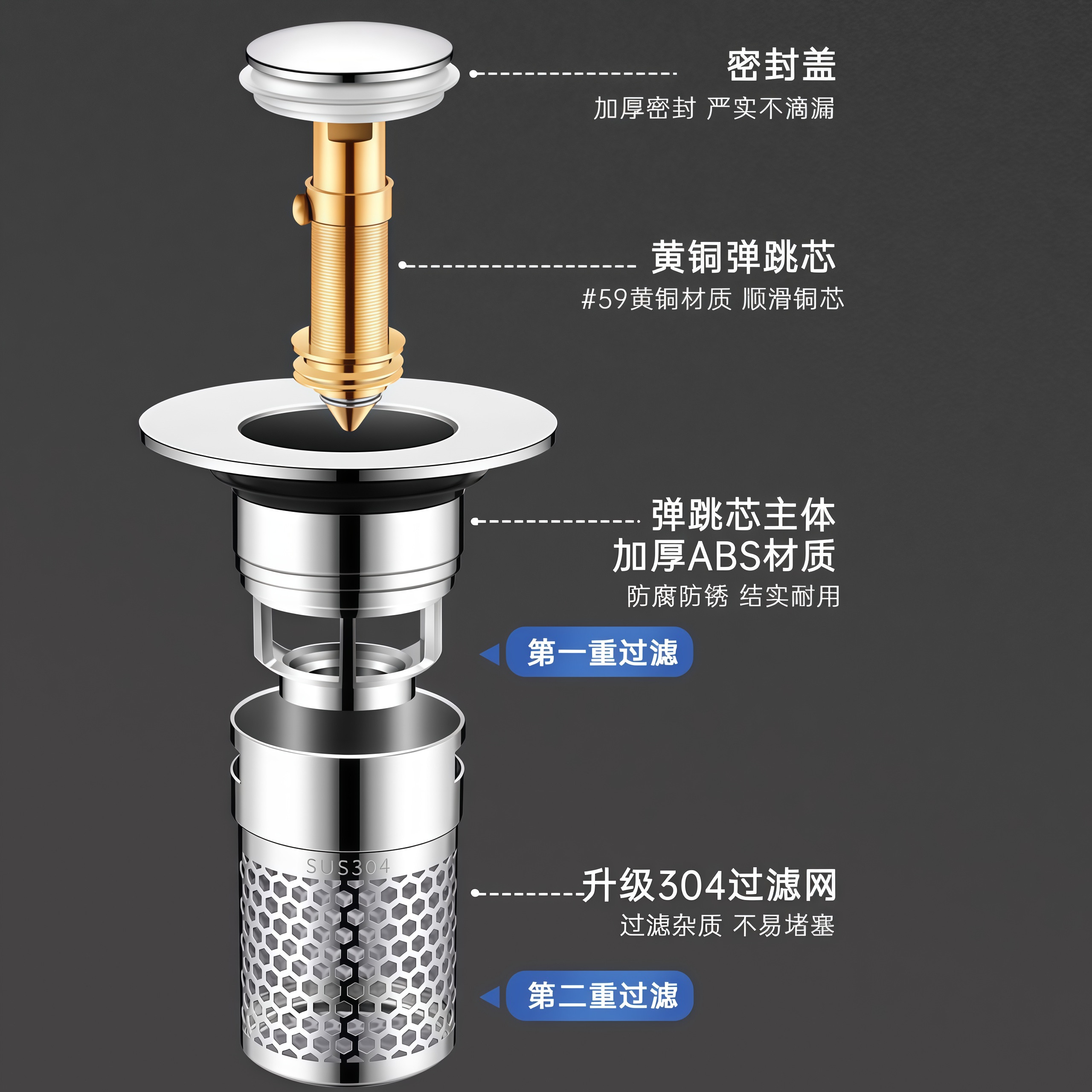 洗手盆脸盆漏水塞子面盆弹跳芯按压式 配件防臭过滤通用下水器滤网