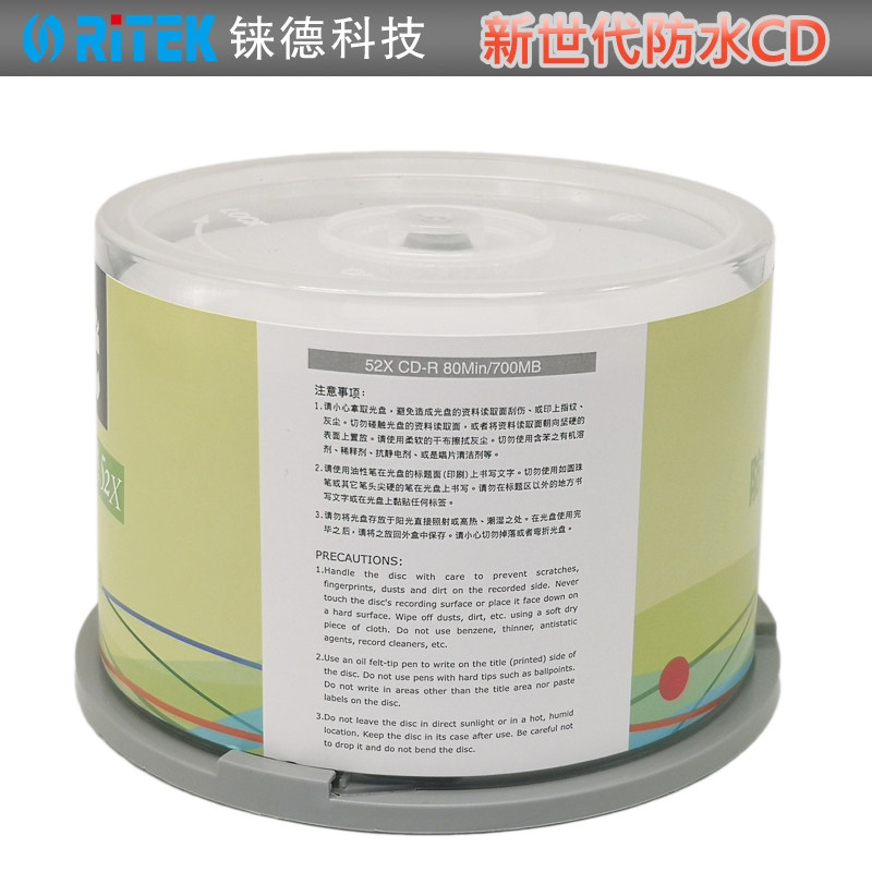 刻录光盘 RITEK 52速700M空白光盘 铼德 音乐盘 车载光盘 光碟 新世代防水 50片 空白cd cd刻录盘
