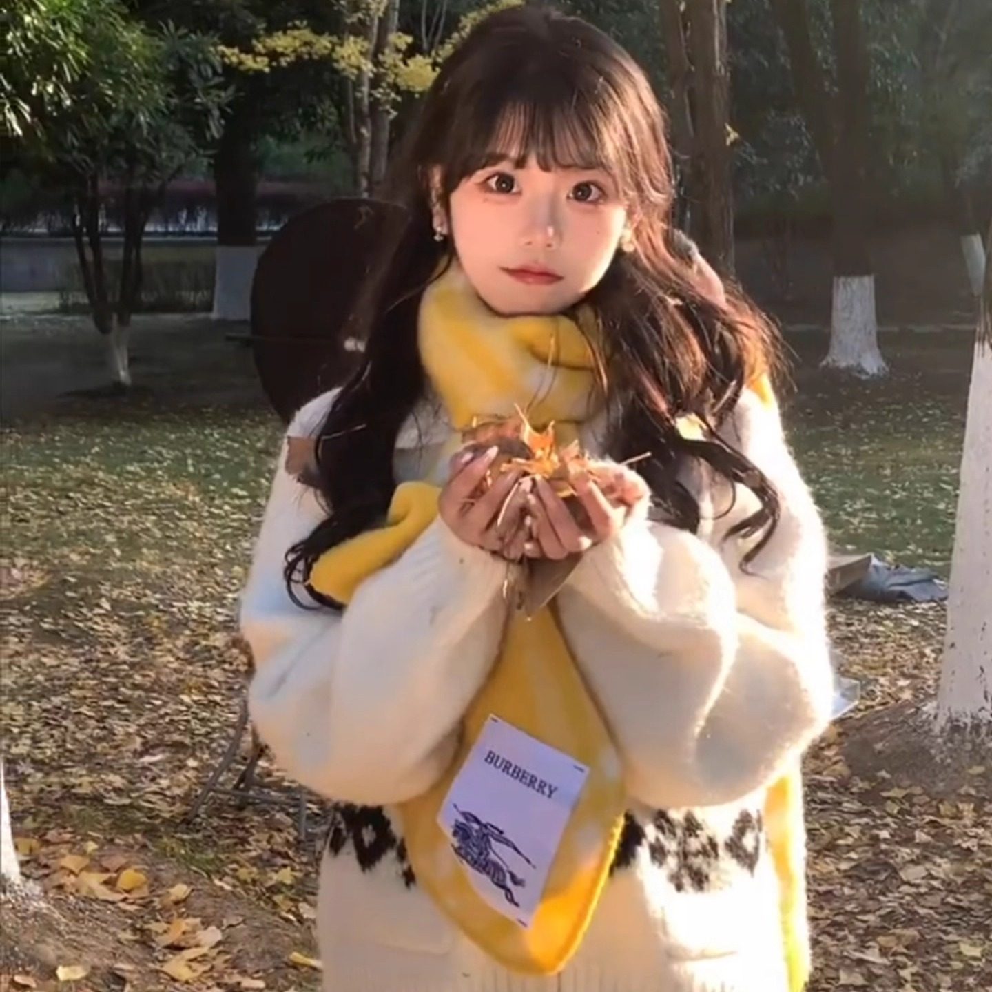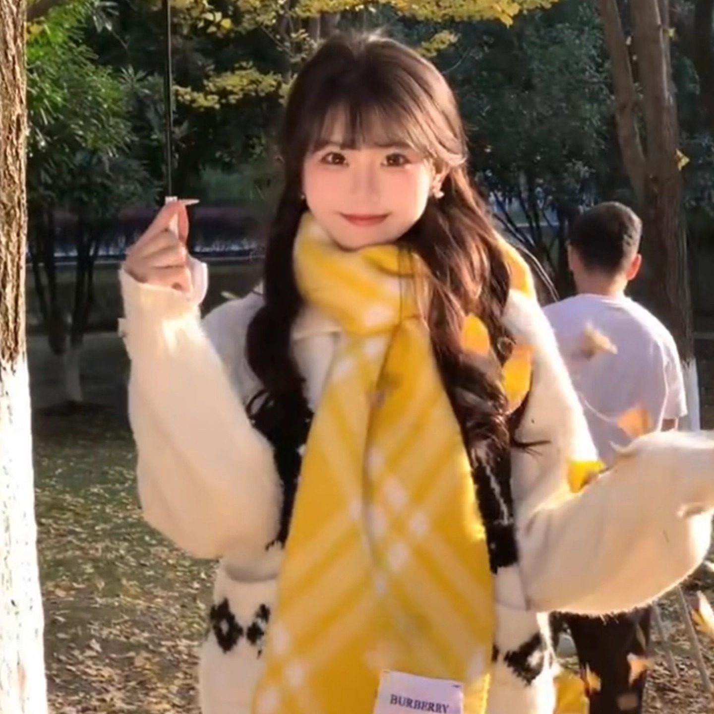 美拉德风棕色仿羊绒围巾女冬季 高级感流苏马海毛加厚围脖学生新款