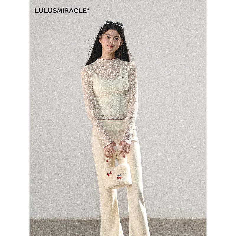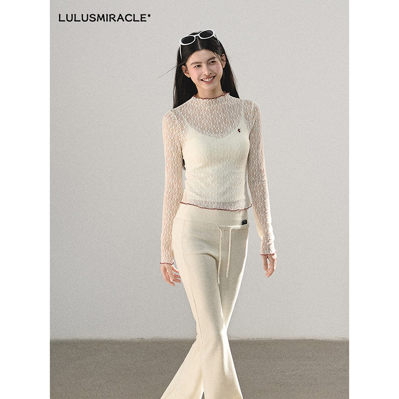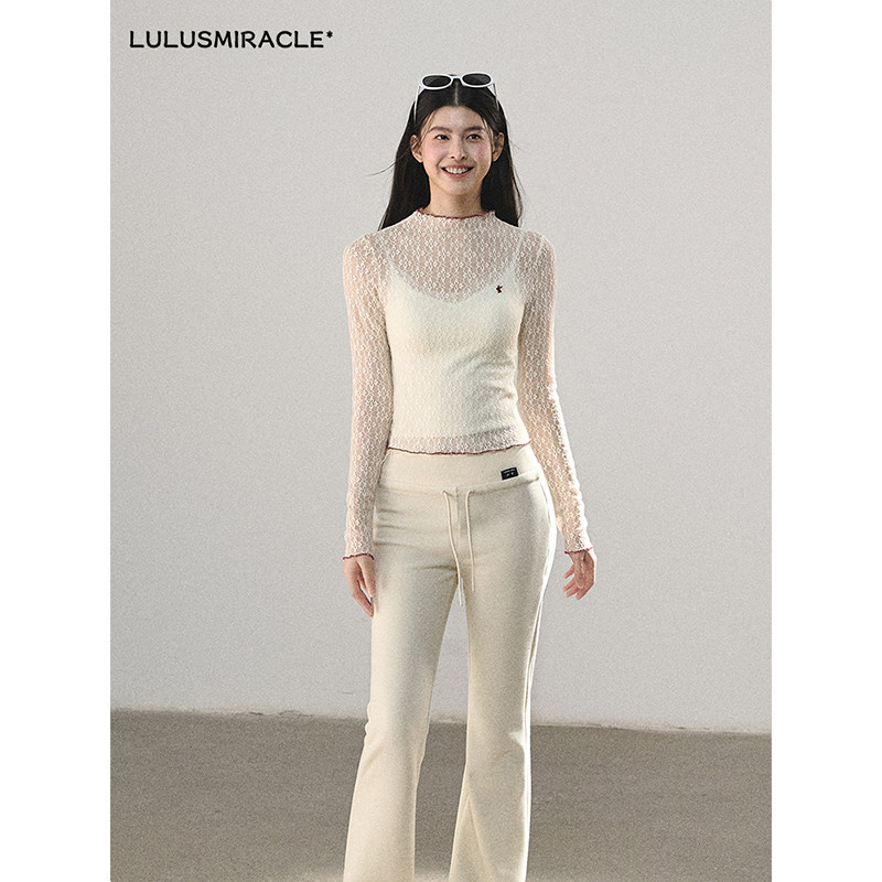 繁花脉络 微喇白色休闲裤 花苞领修身 打底 蕾丝衫 Lulusmiracle