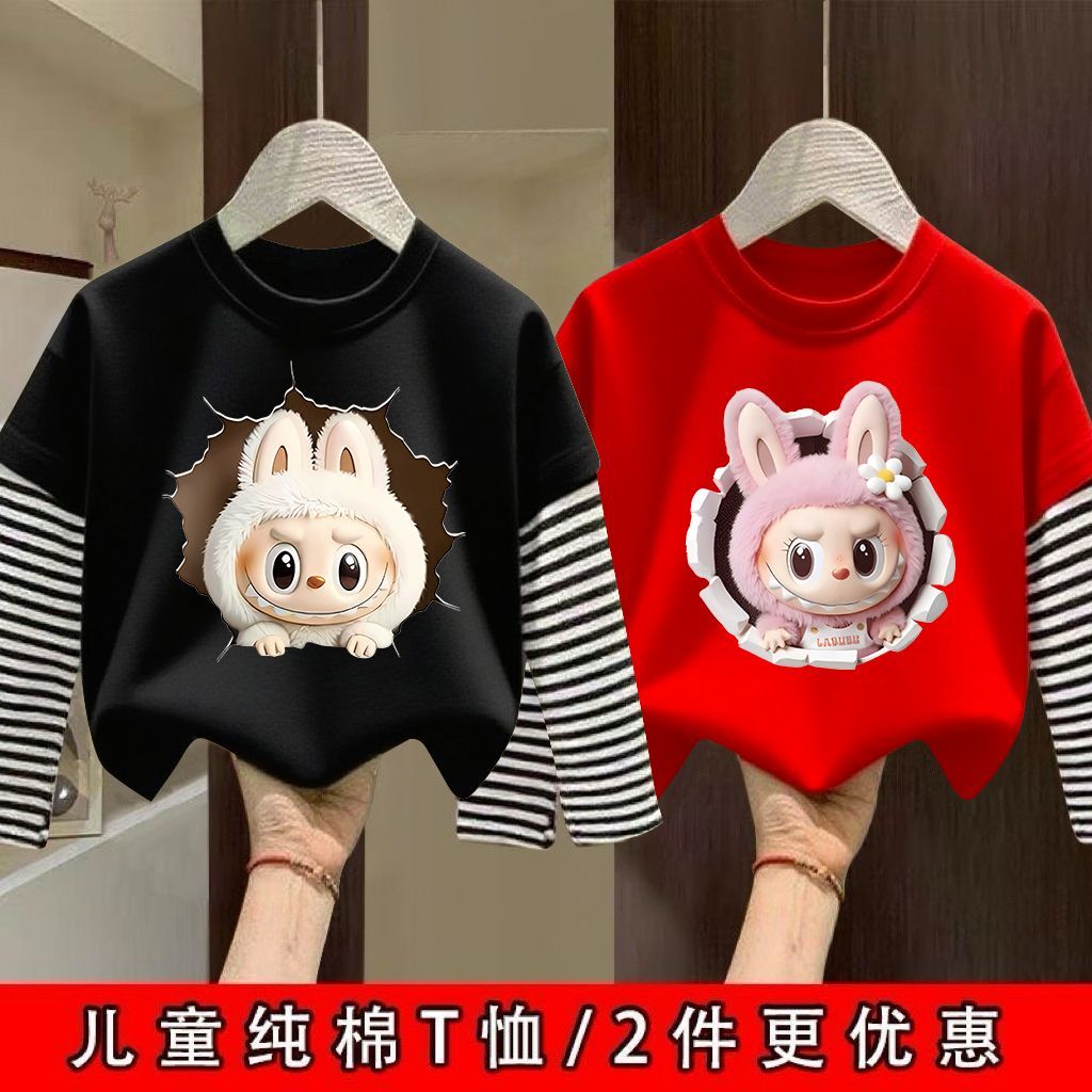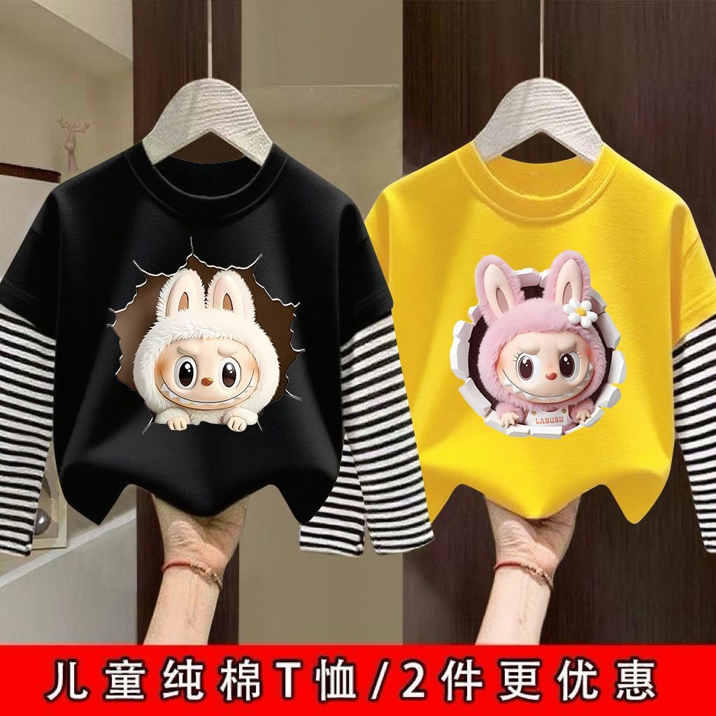 春秋款 洋气百搭假两件t恤卡通拉布布男女童休闲上衣t 儿童纯棉长袖