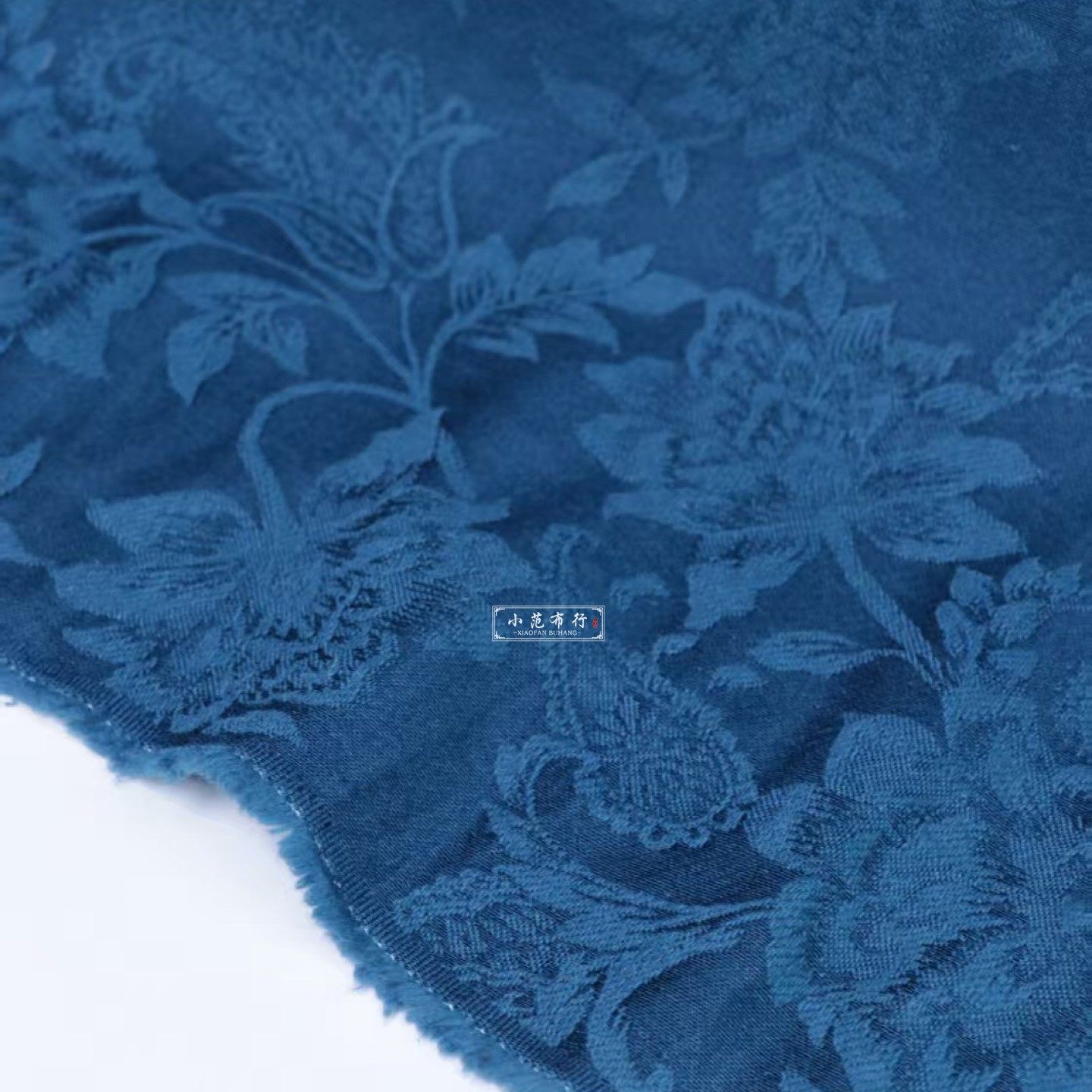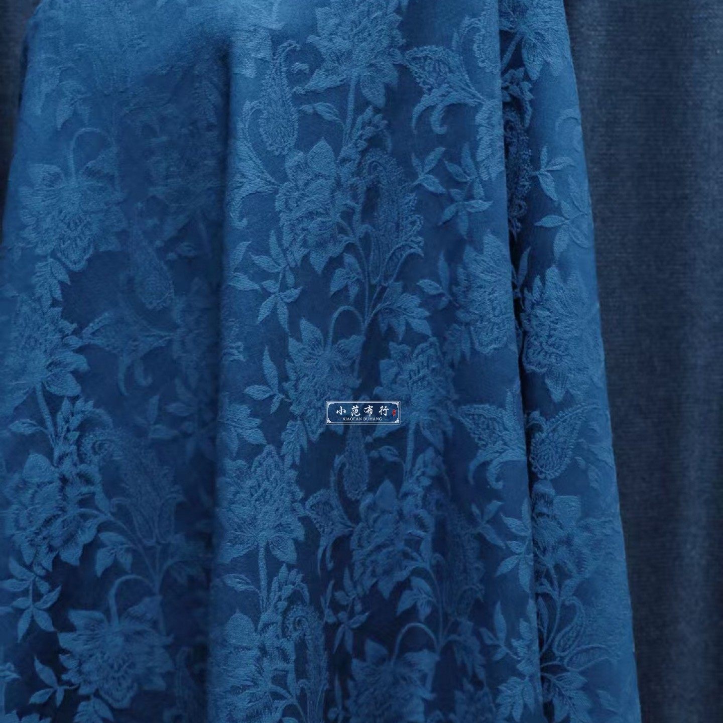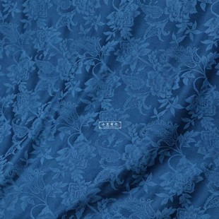 孔雀蓝棉麻立体浮雕提花布料柔软垂坠春秋衬衫 子面料 袍子连衣裙裤