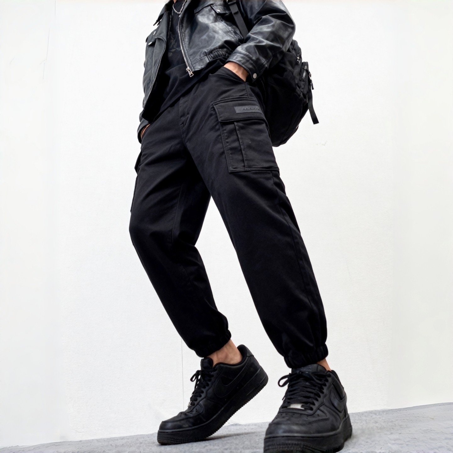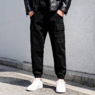 束脚裤 ABLE 黑色磨毛厚款 牛仔裤 多口袋休闲小个子 JEANS秋冬男工装