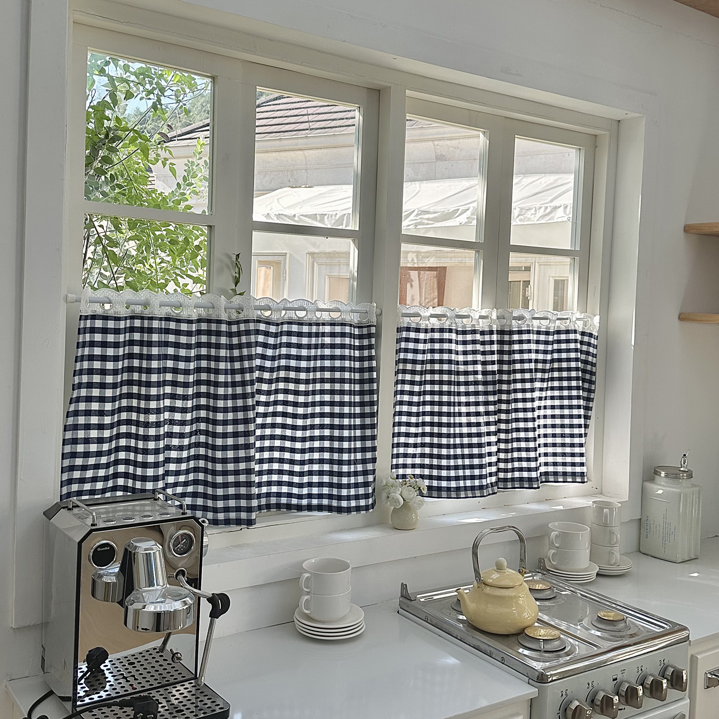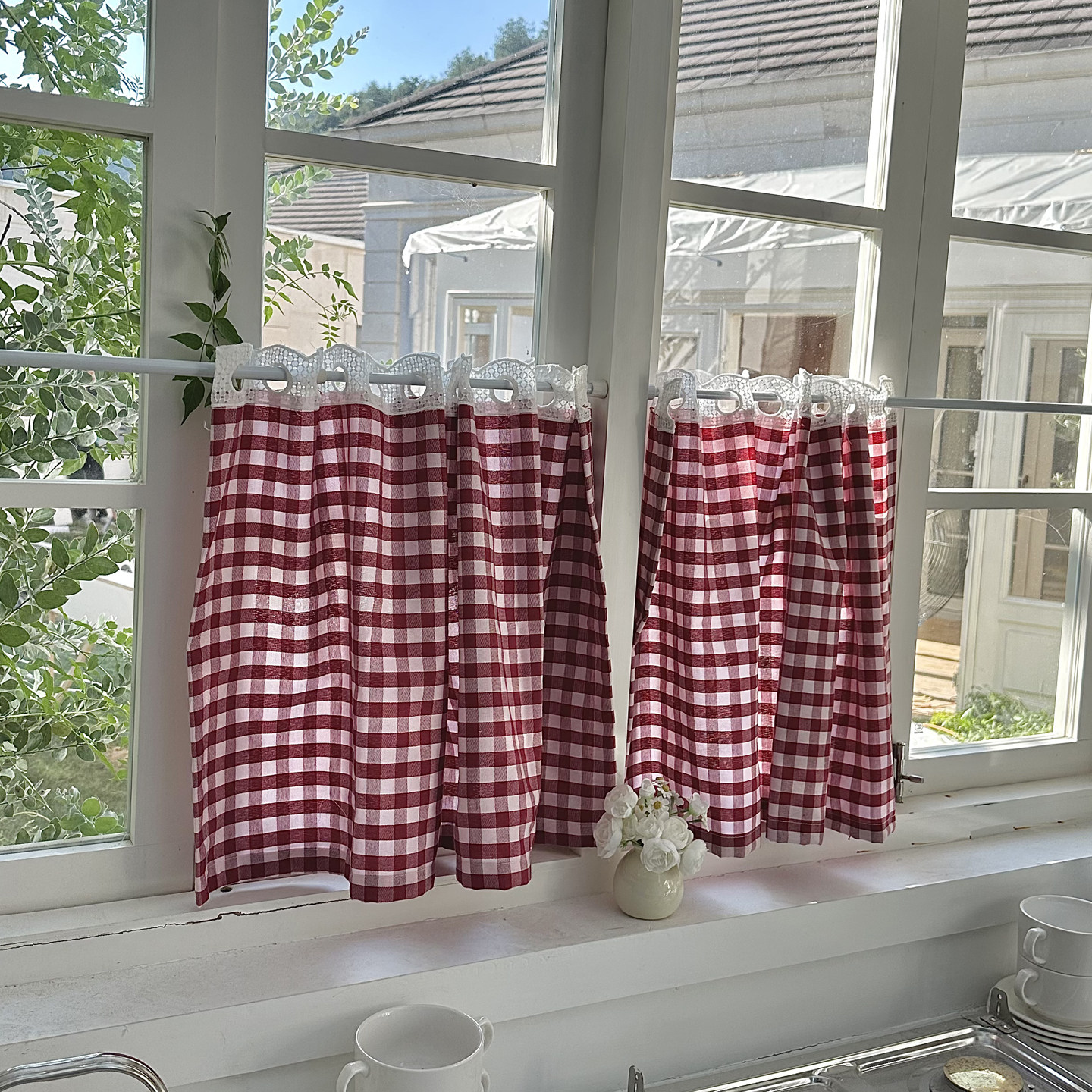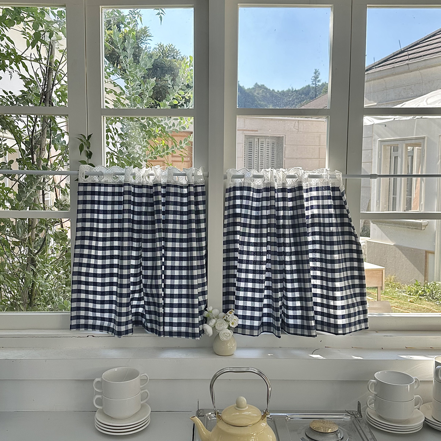 小窗帘遮挡隐私美式 田园蕾丝短帘头免打孔穿杆卫生间厨房半帘短帘
