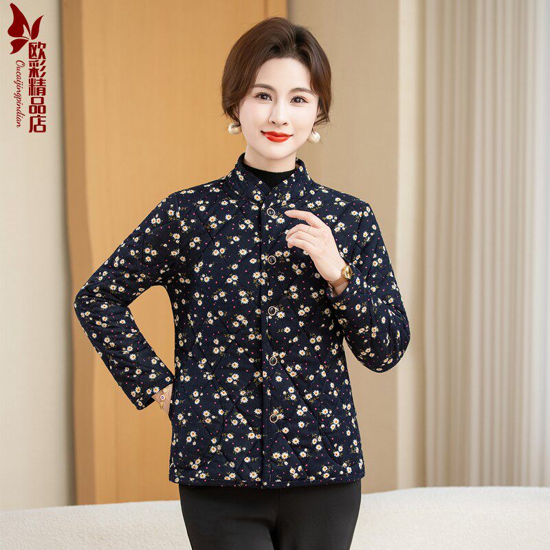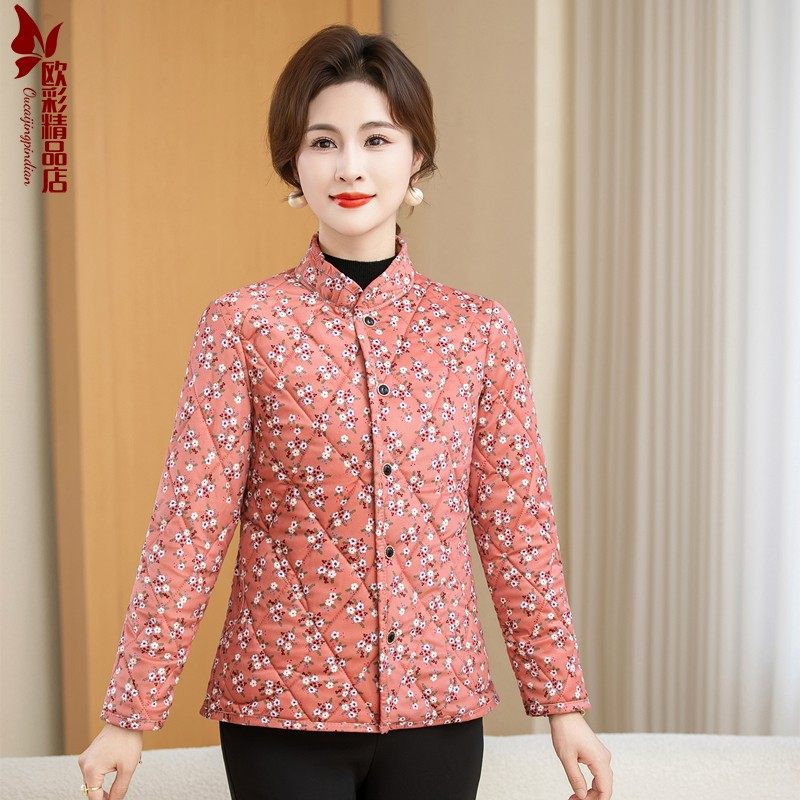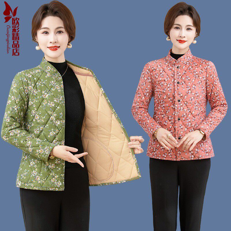中老年人女棉袄保暖内胆碎花棉服短外套妈妈秋冬装 驼绒加厚小棉衣