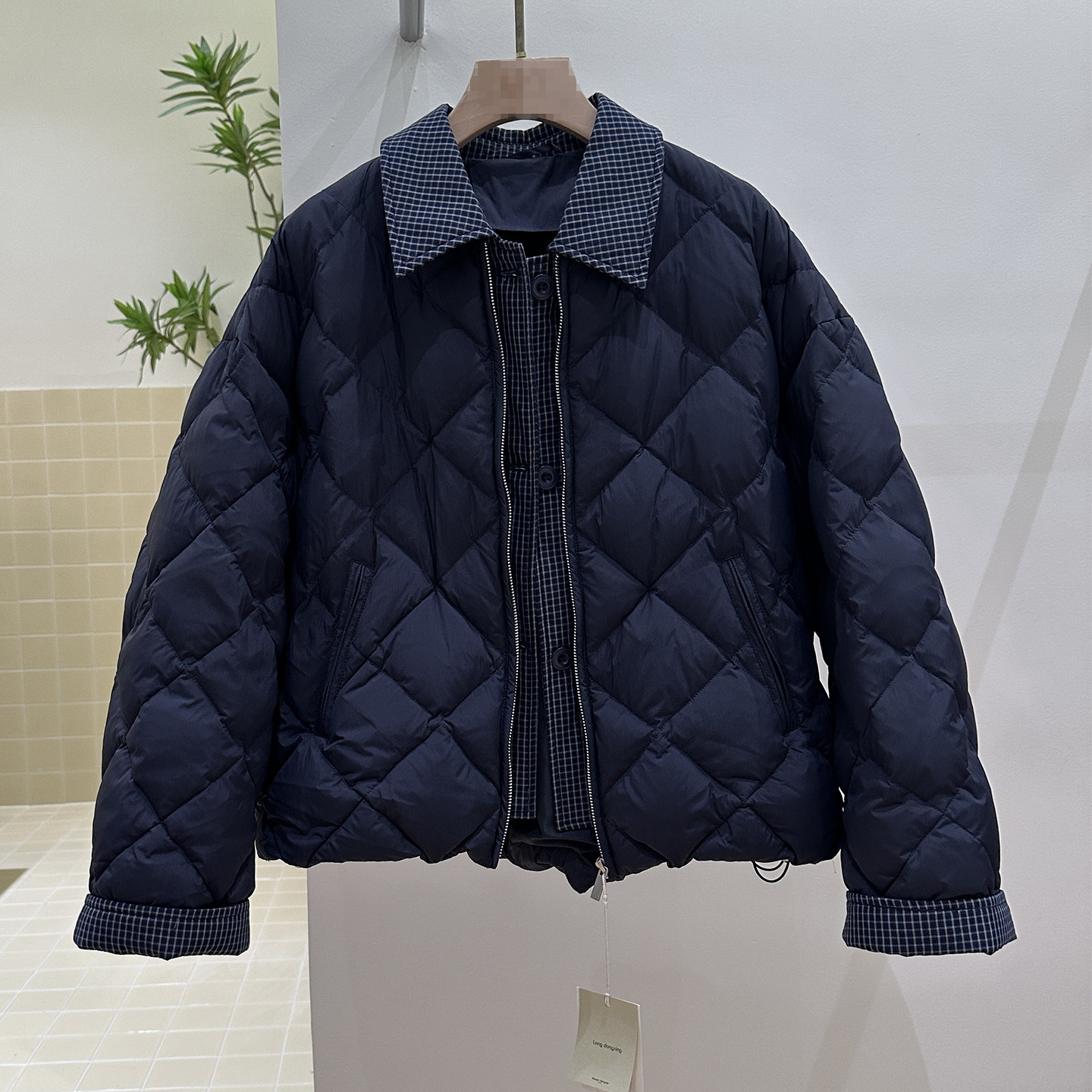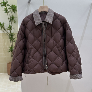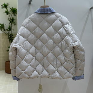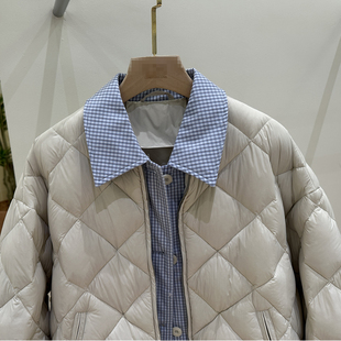 90%鸭绒格子拼接假两件轻薄羽绒服女短款 菱形格外套 2025秋冬新款