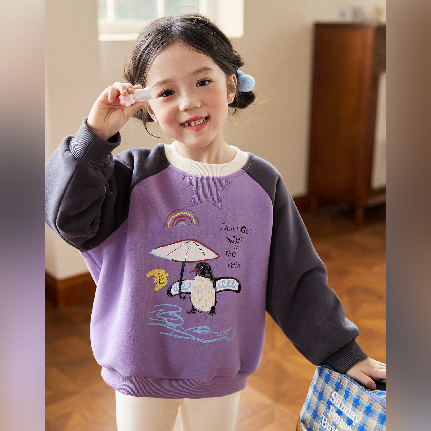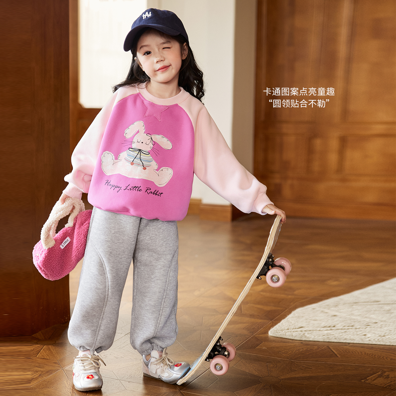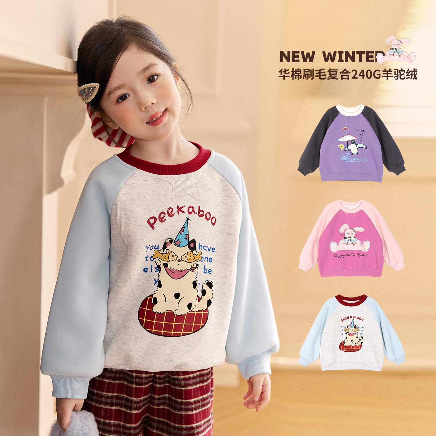 女童休闲百搭上衣 新款 小O宝Okids童装 宝宝卫衣女加绒撞色2025冬季