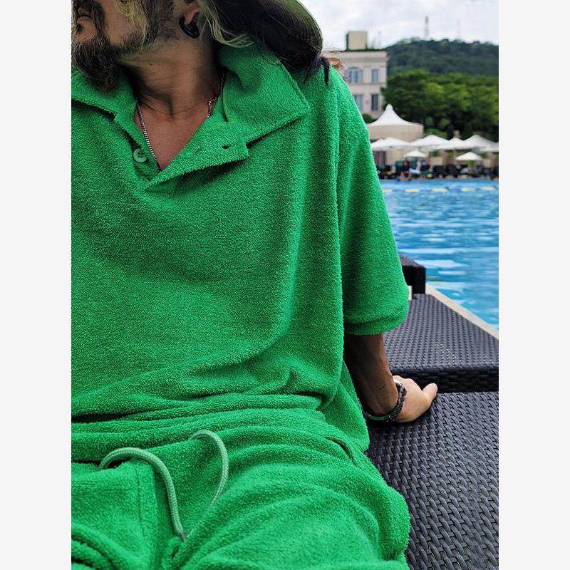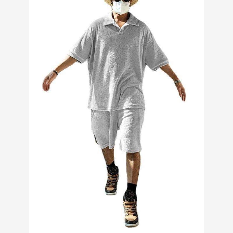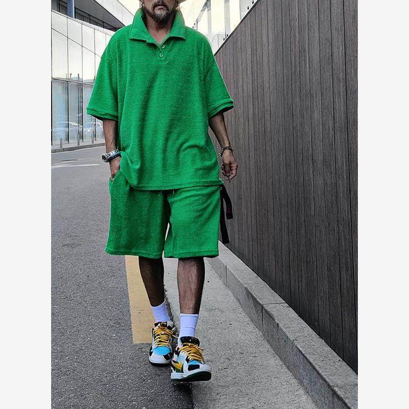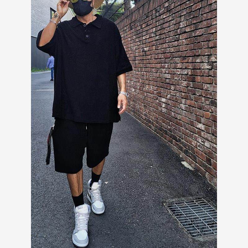 t恤Polo衫 宽松短裤 休闲套装 2025夏季 套装 翻领短袖 男士 欧美新款