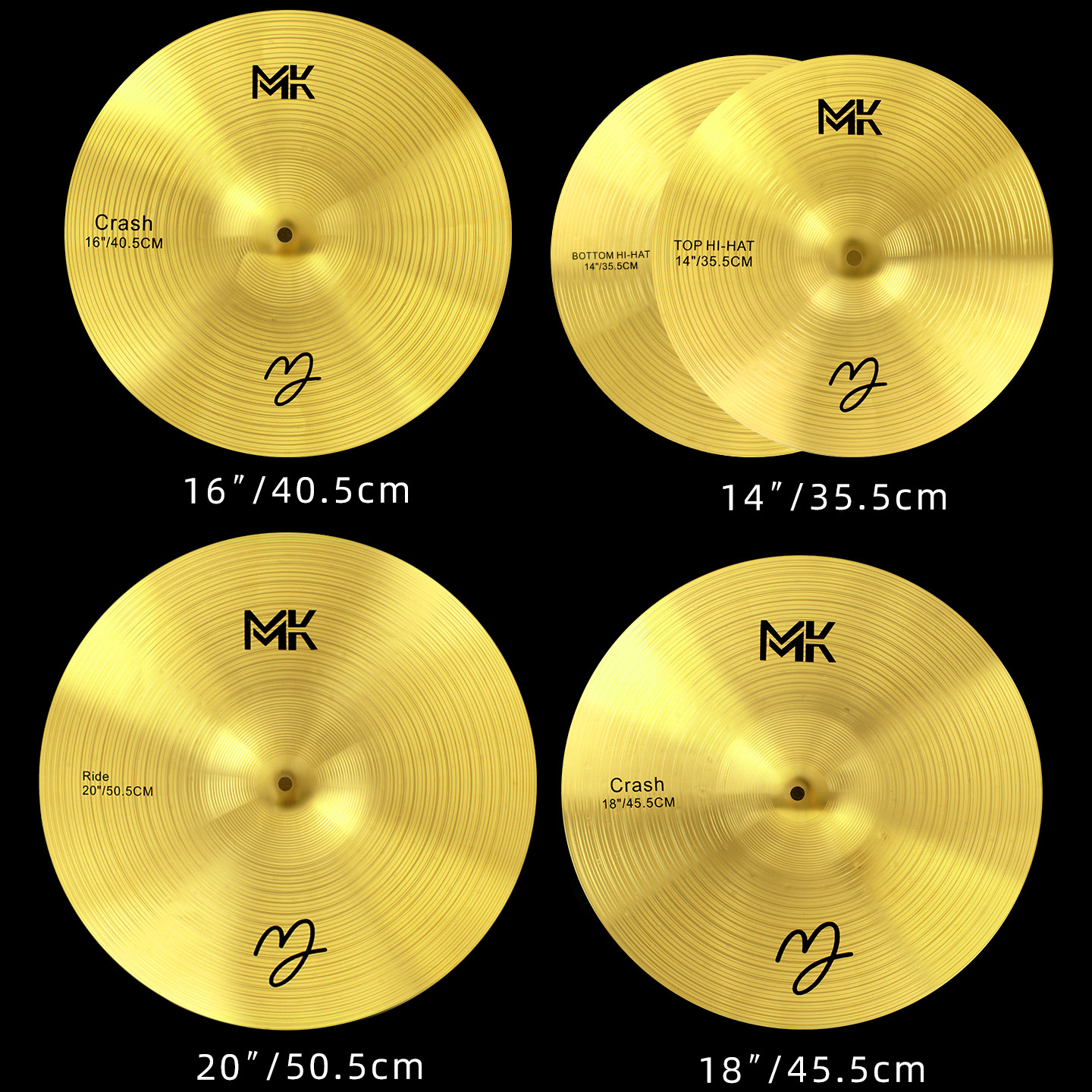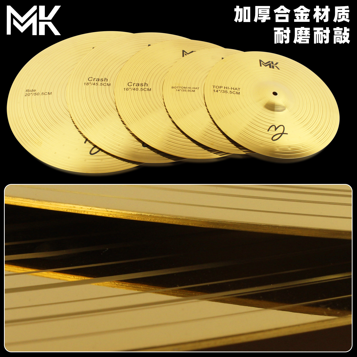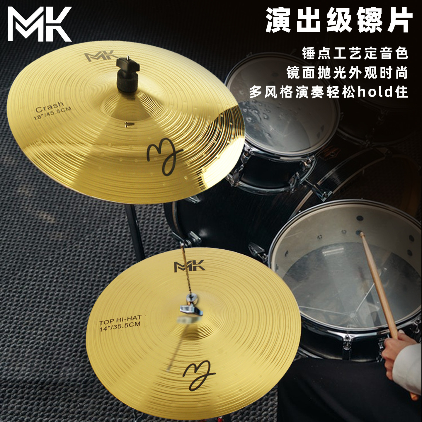 MK架子鼓镲片m6吊镲16寸重音镲支架20寸叮叮镲片18强音镲黄铜套装