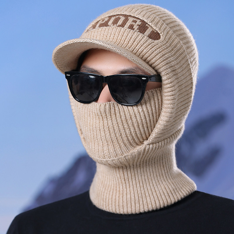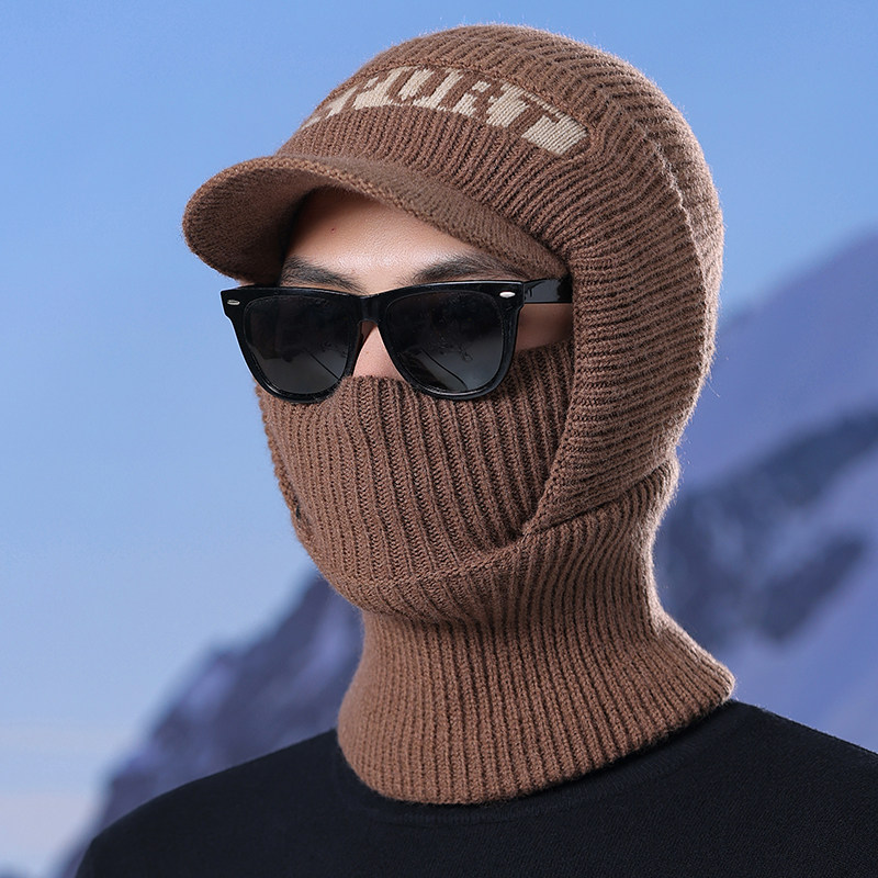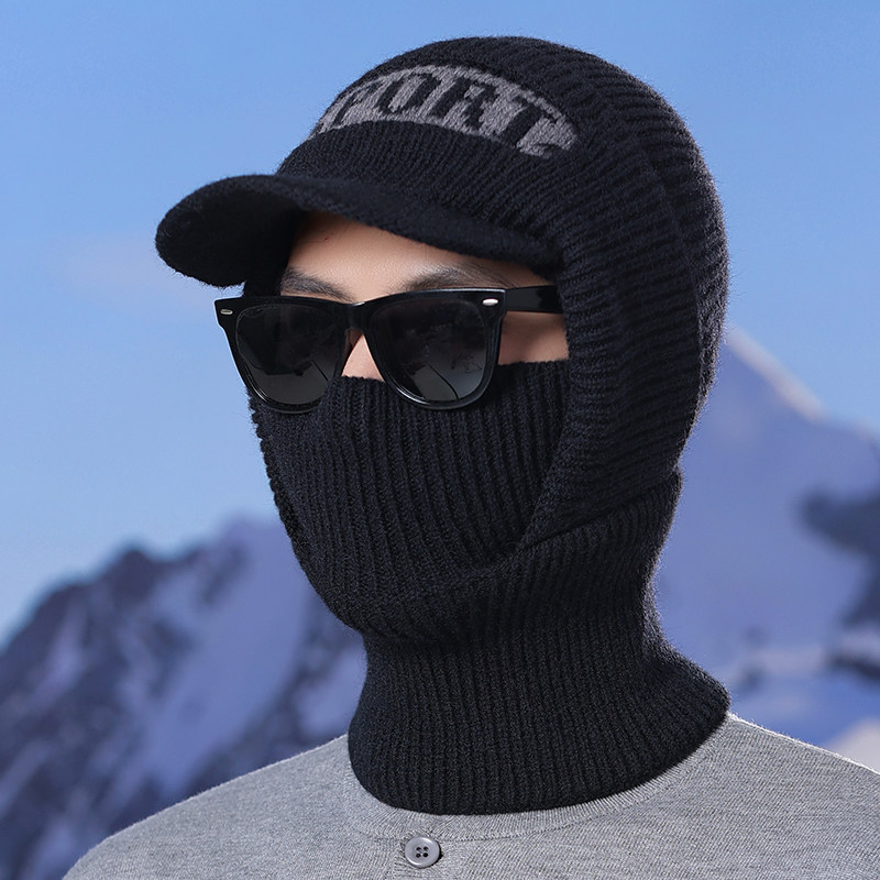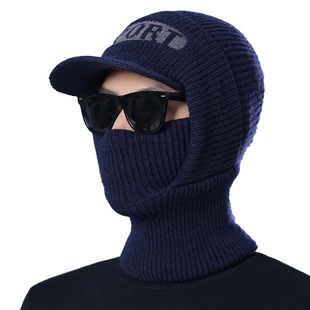 护耳帽子男冬天加绒针织毛线帽围脖一体加厚骑行秋冬季 护颈连体帽