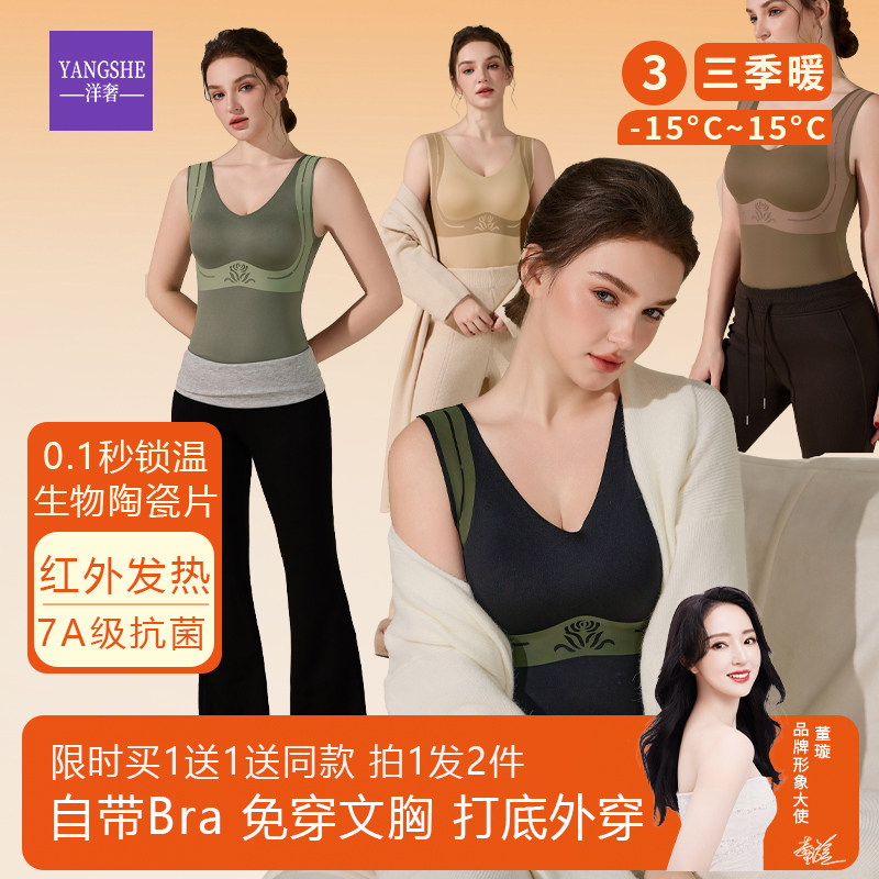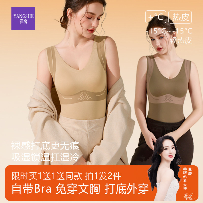 婷美粉底液蓄热塑形保暖背心女带胸垫一体式 打底内衣 2025秋冬新款