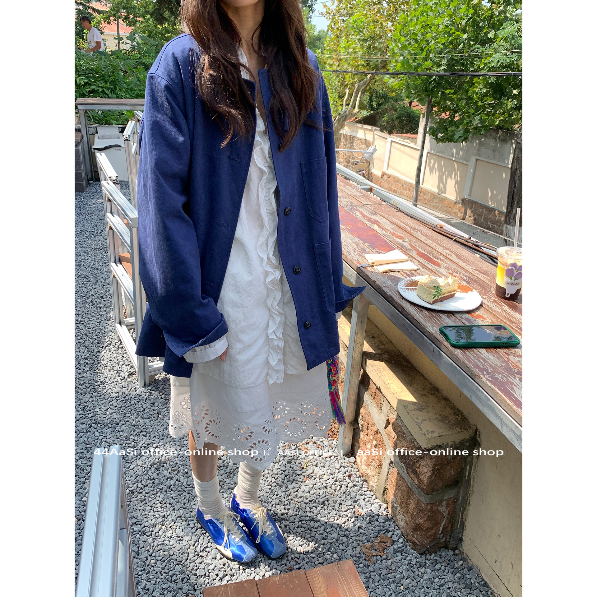 可调节水洗多口袋牛仔外套 Miu系蓝定染夹棉 44AaSi 复古内敛