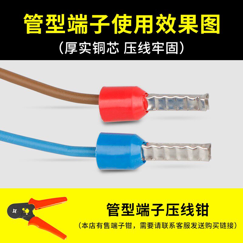 E2508管型针型冷压端子铜线耳针形插针VE管形预绝缘欧式 接线端子