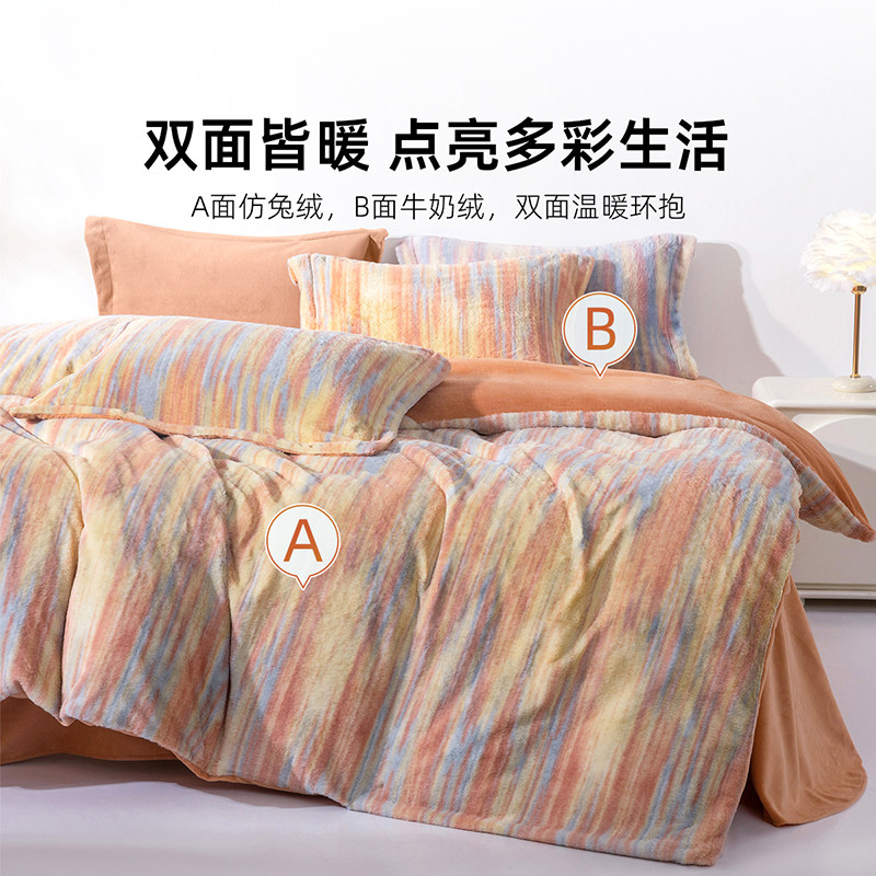 梦洁248X248绒四件套牛奶绒加厚床单被套秋冬仿兔绒珊瑚绒 晴汐