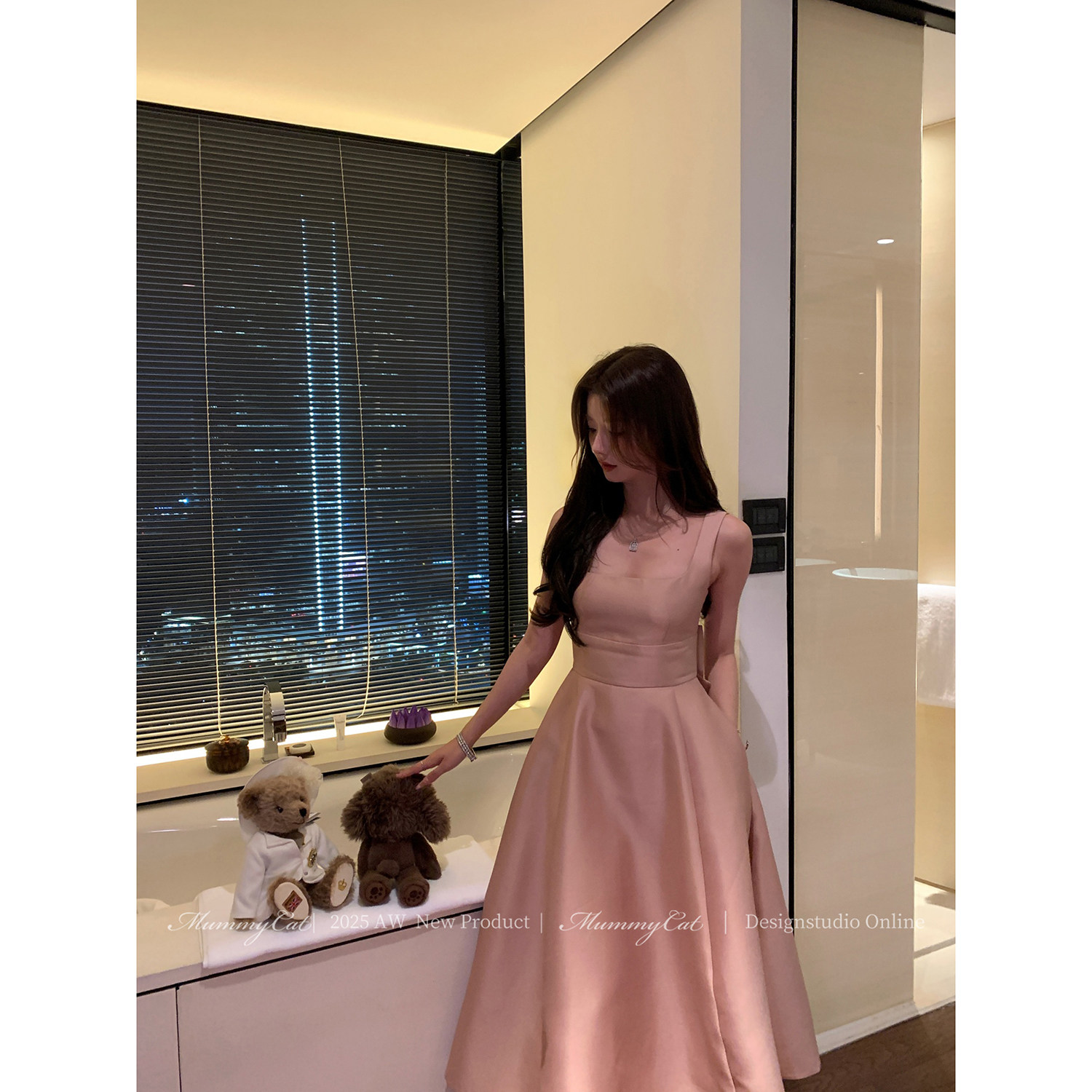 高级方领蝴蝶结长款 25新品 礼服连衣裙 蜜桃公主 MummyCat下蛋喵