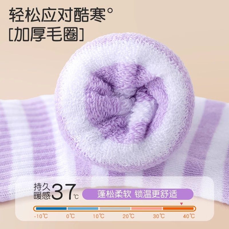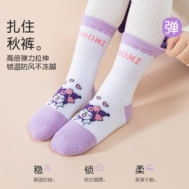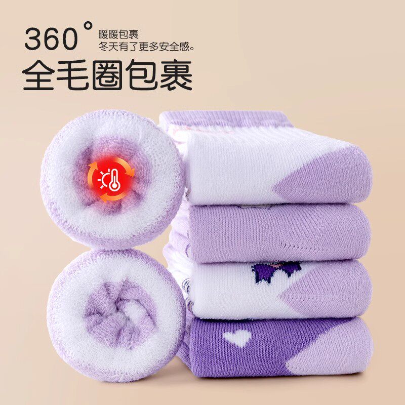 儿童袜子女童袜子冬季 加厚毛圈绒中筒袜库洛米防臭吸汗透气学生袜