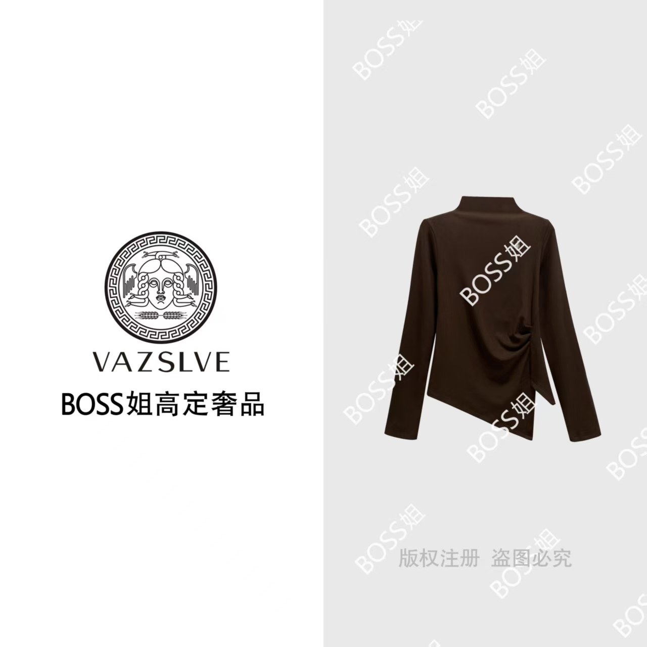 捡漏半高领不规则收腰T恤2025秋上衣 全新奢品 68530 VAZSLVE