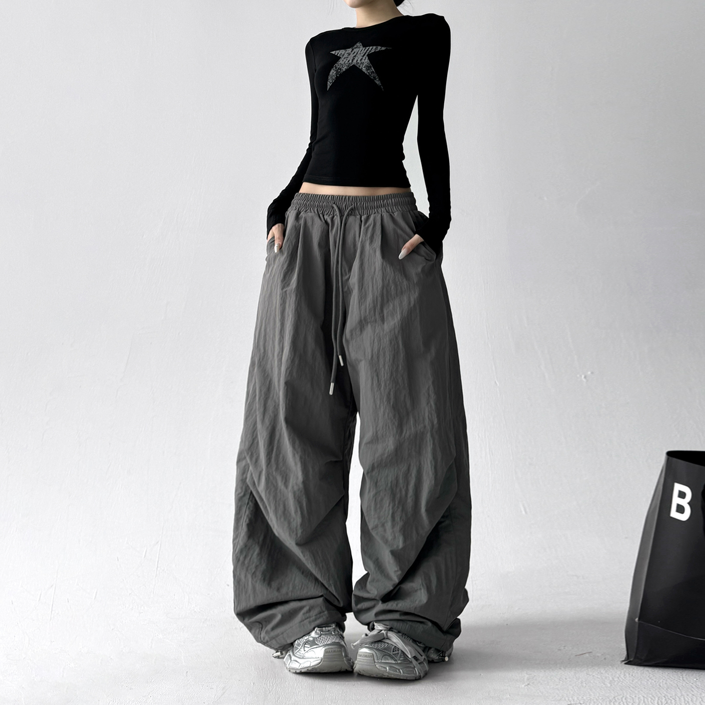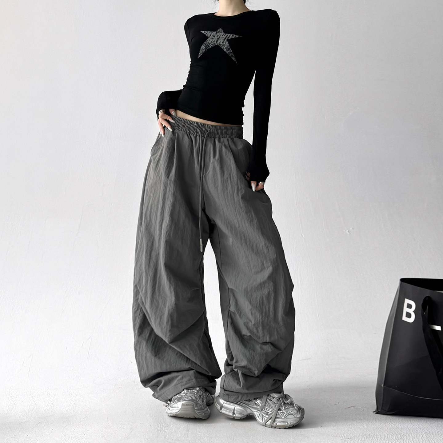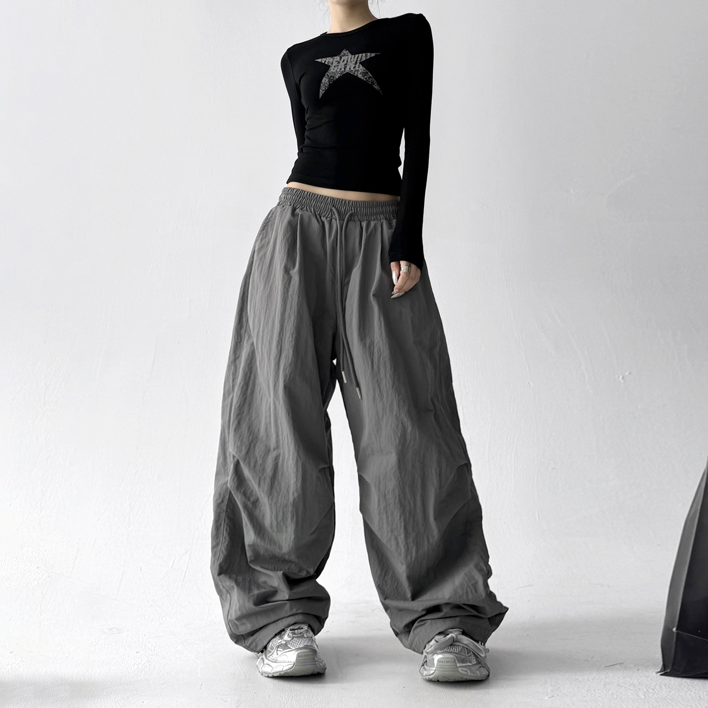 新款 女2025冬季 厚款 宽松高腰休闲降落伞裤 原创直筒工装 滑雪裤 裤