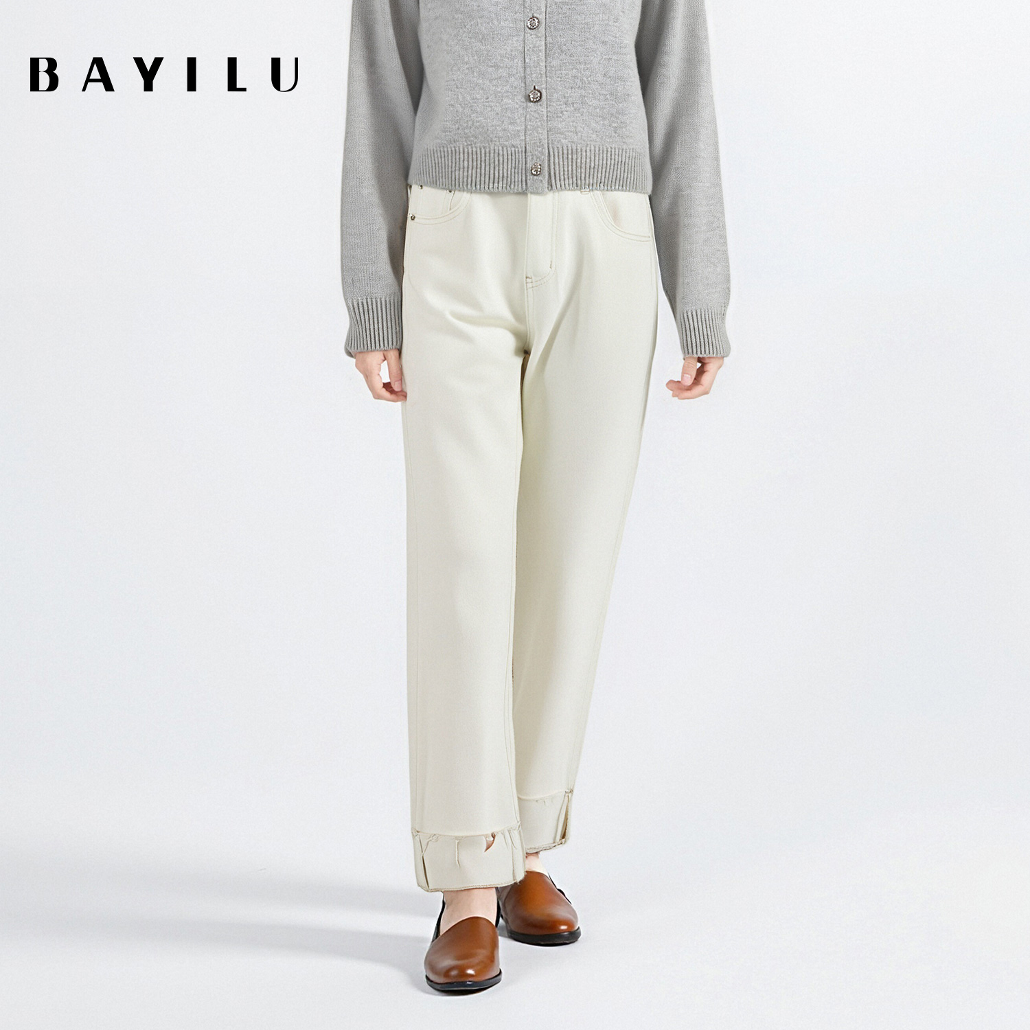 女加绒九分紧身小脚裤 高腰提臀牛仔裤 女 白色靴裤 SJOG塑形不褶皱