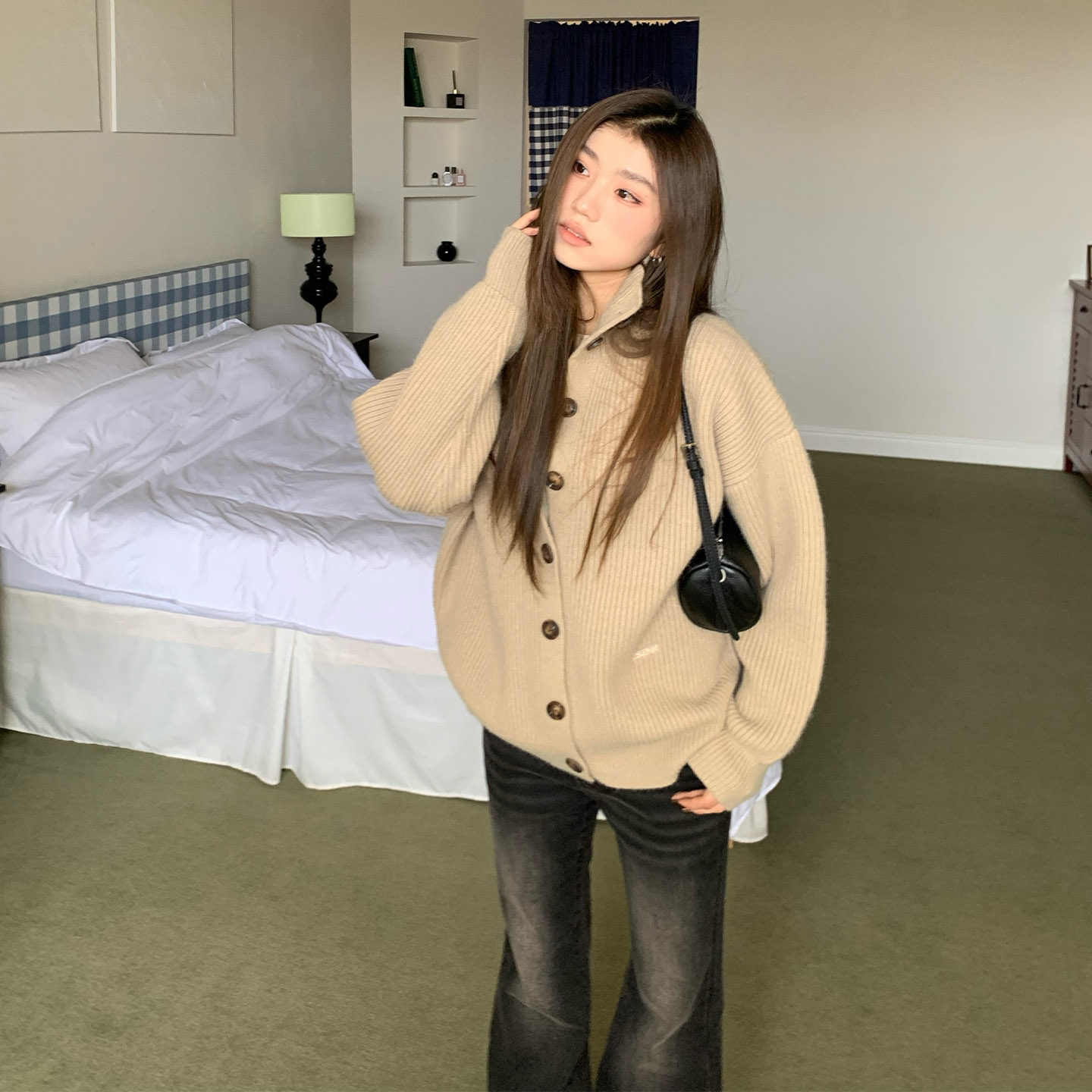 橘子树在哪儿慵懒风高领毛衣外套女秋重磅软糯针织开衫 限时价
