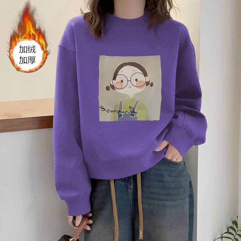 韩版 卫衣女秋冬新款 减龄遮肉宽松上衣女ins 长袖 随机印花纯棉时尚