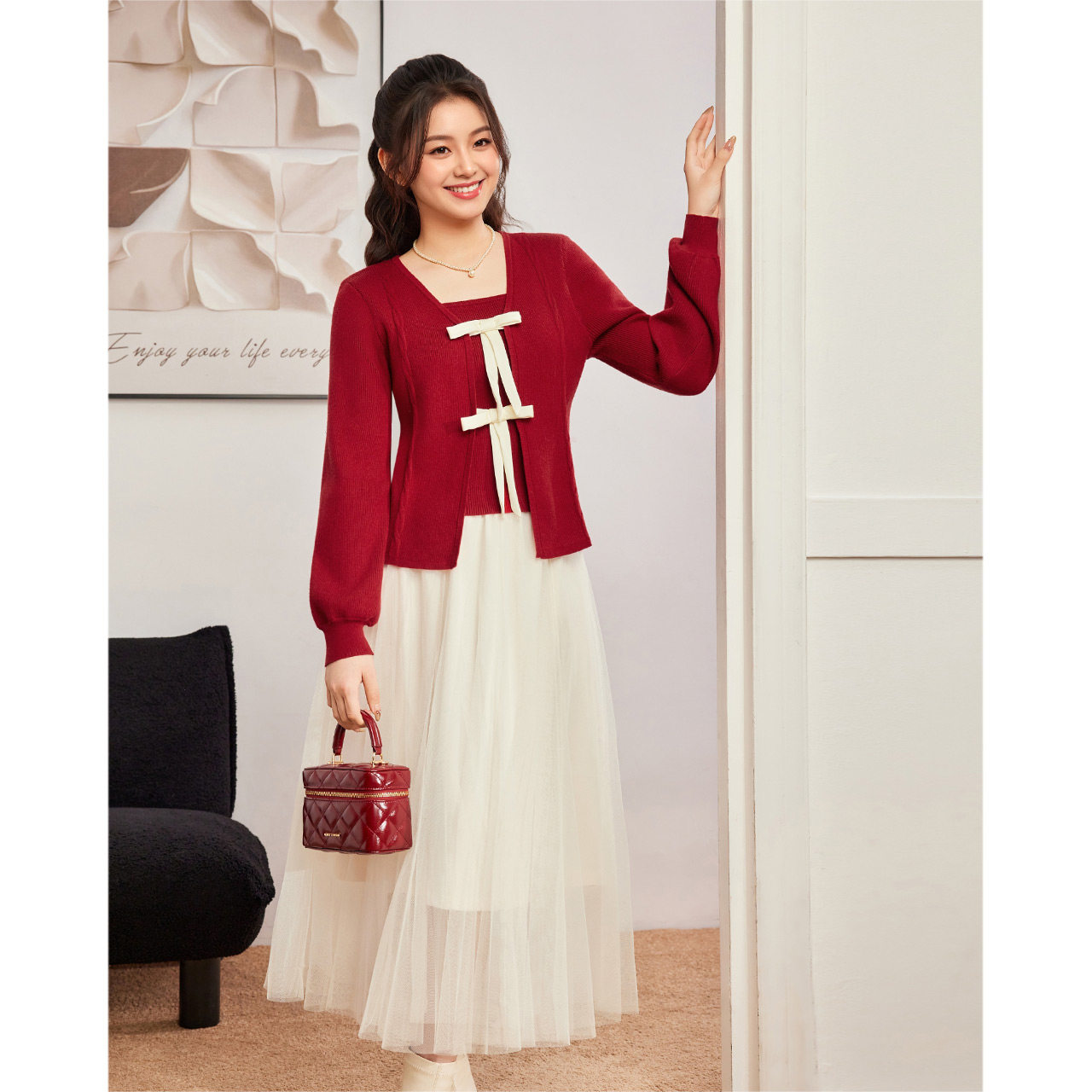 爱依服 2025秋冬法式 微胖 女装 温柔浪漫气质上下套裙 大码 IEF
