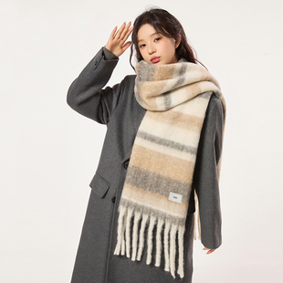 鸿星尔克奶咖条纹围巾女2025新款 秋冬氛围感保暖围脖软糯学生披肩